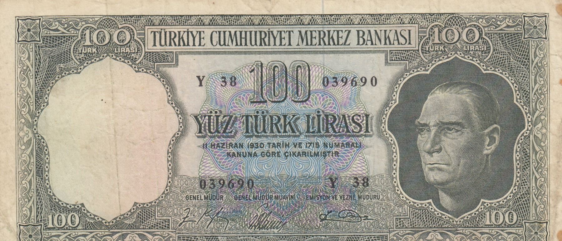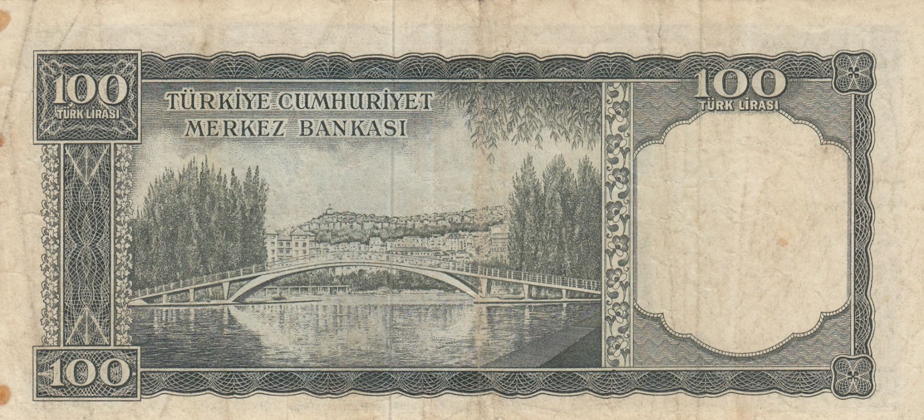 Turkey, 100 Lira, 1964, FINE, p177, 5/5. Emission