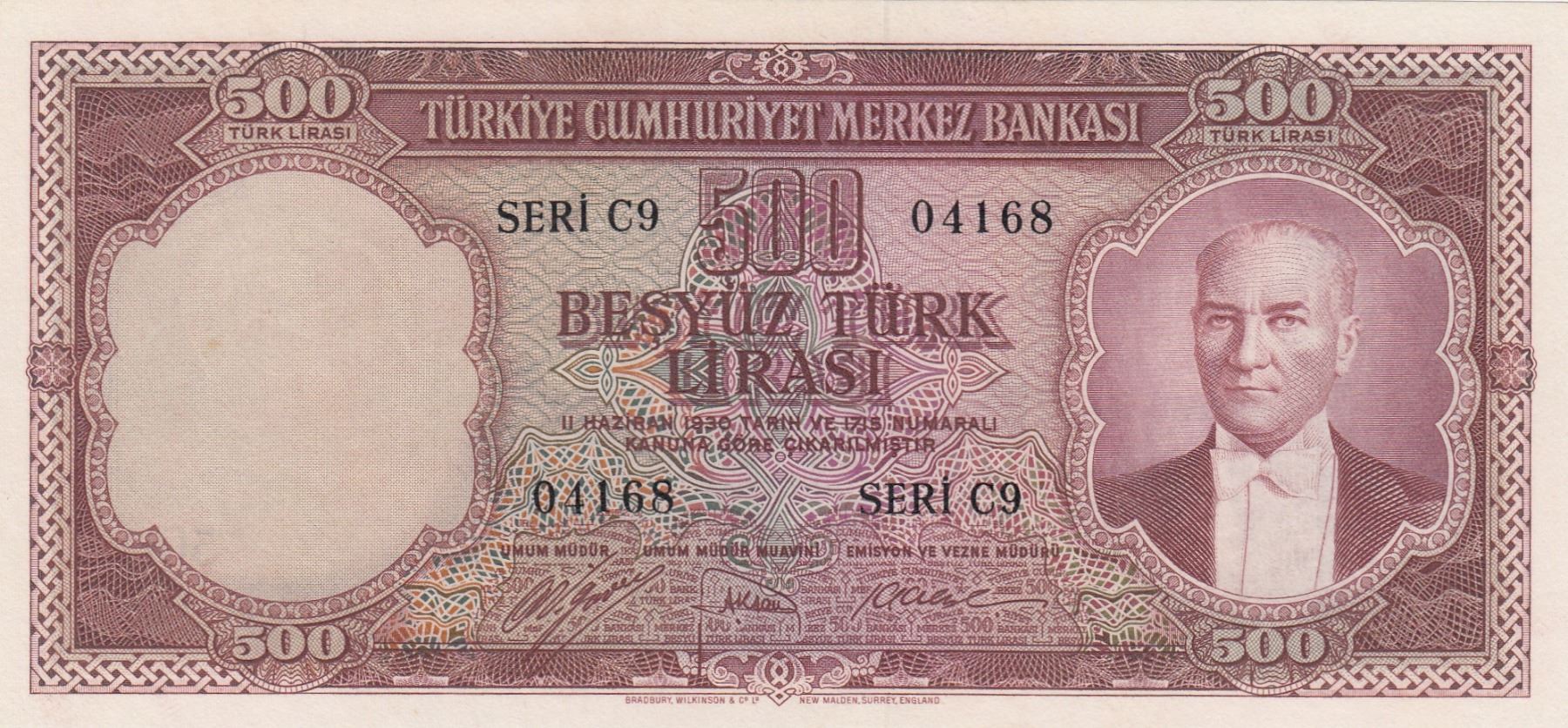 Turkey, 500 Lira, 1953, AUNC / UNC, p170, 5/1. Emission