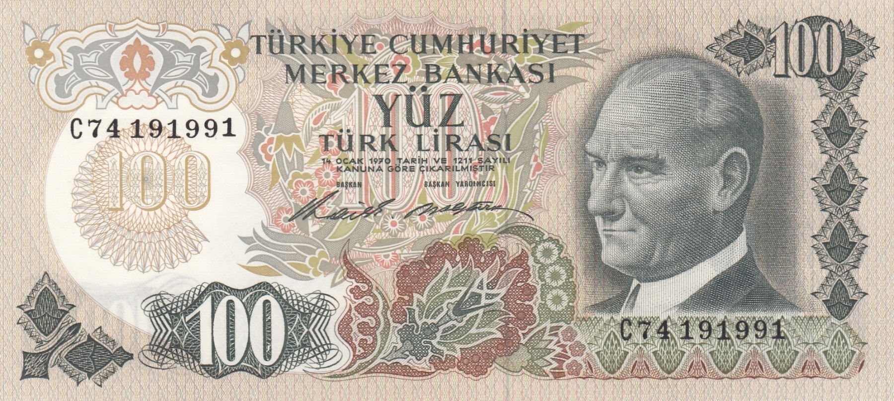 Turkey, 100 Lira, 1972, UNC, p189, 6/1. Emission