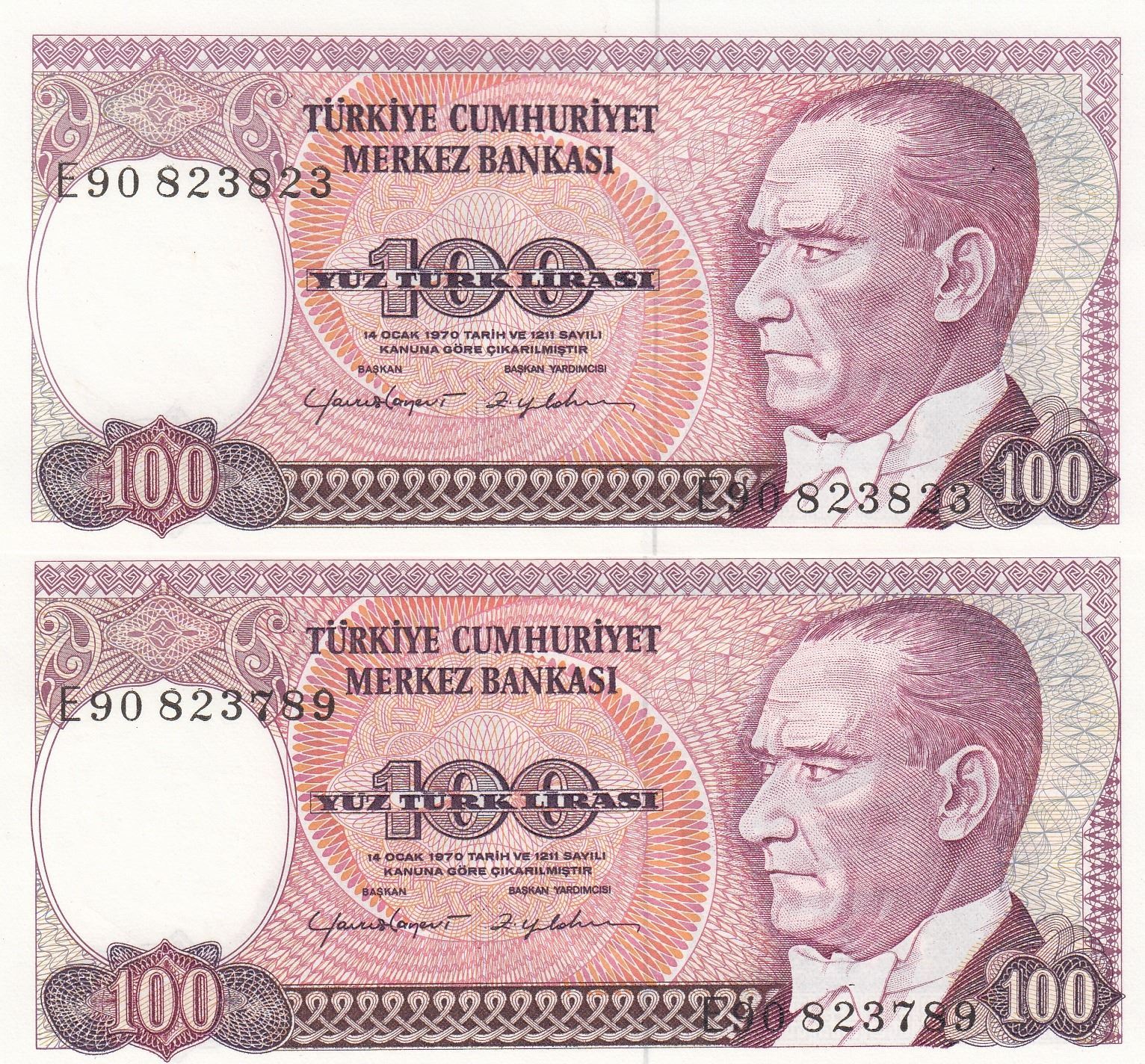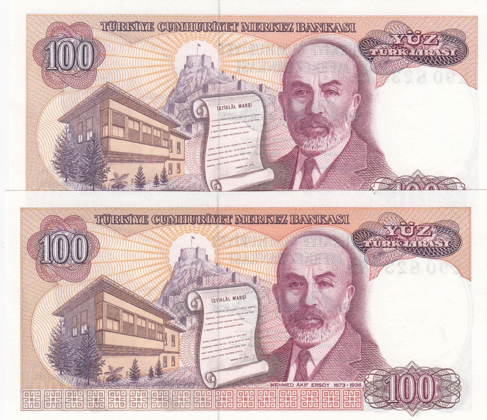 Turkey, 100 Lira, 1984, UNC p194, 7/2. Emission, "E90", (Total 2 banknotes)