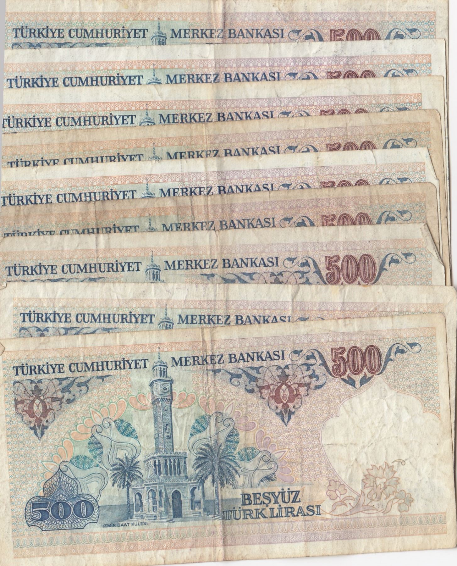 Turkey, 500 Lira, 1983/1984, FINE /VF, p195, 7/1. and 7/2. Emission, (Total 9 banknotes)