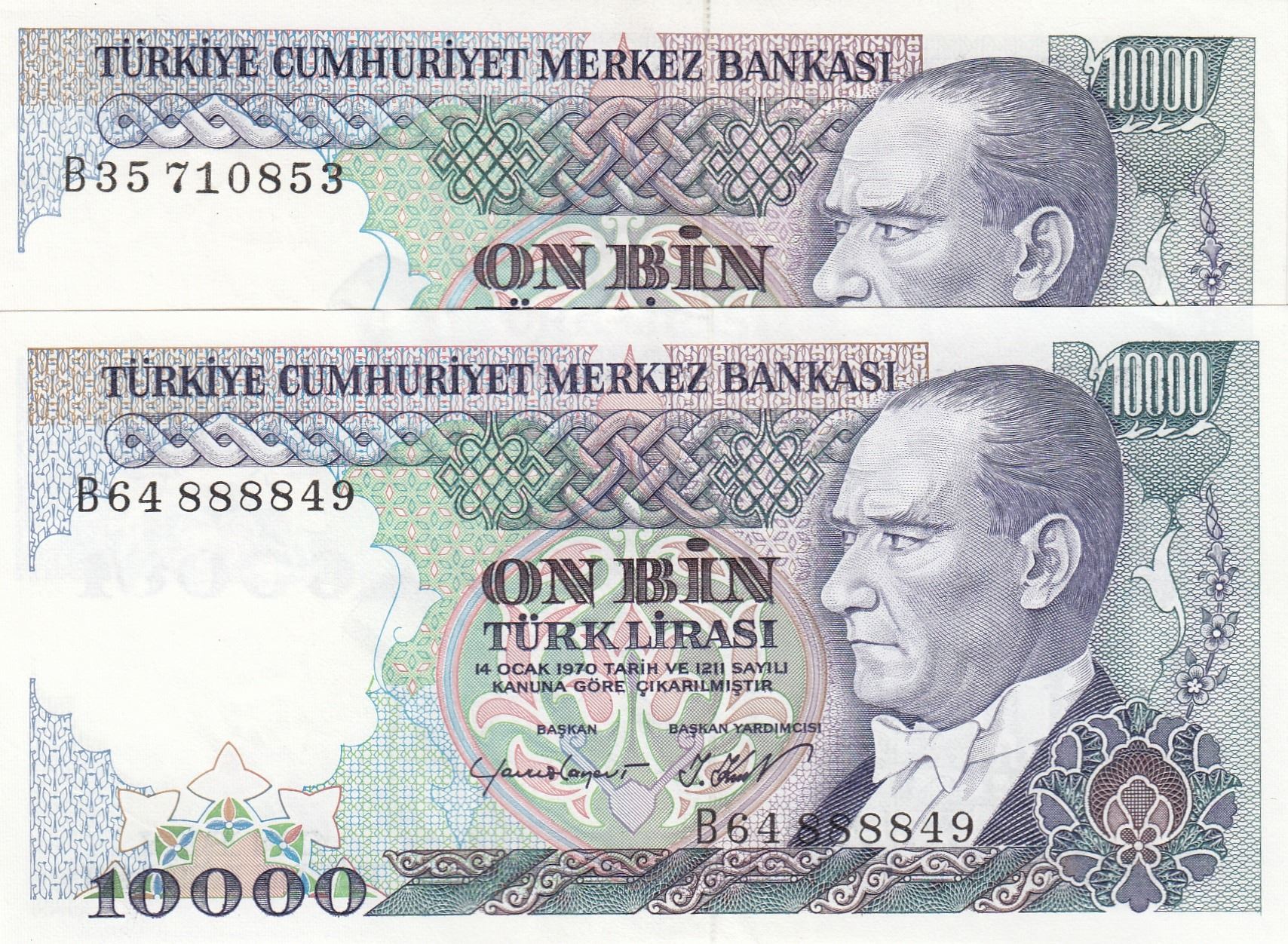 Turkey, 10.000 Lira, 1984, UNC p199, 7/2. Emission, (Total 2 banknotes)