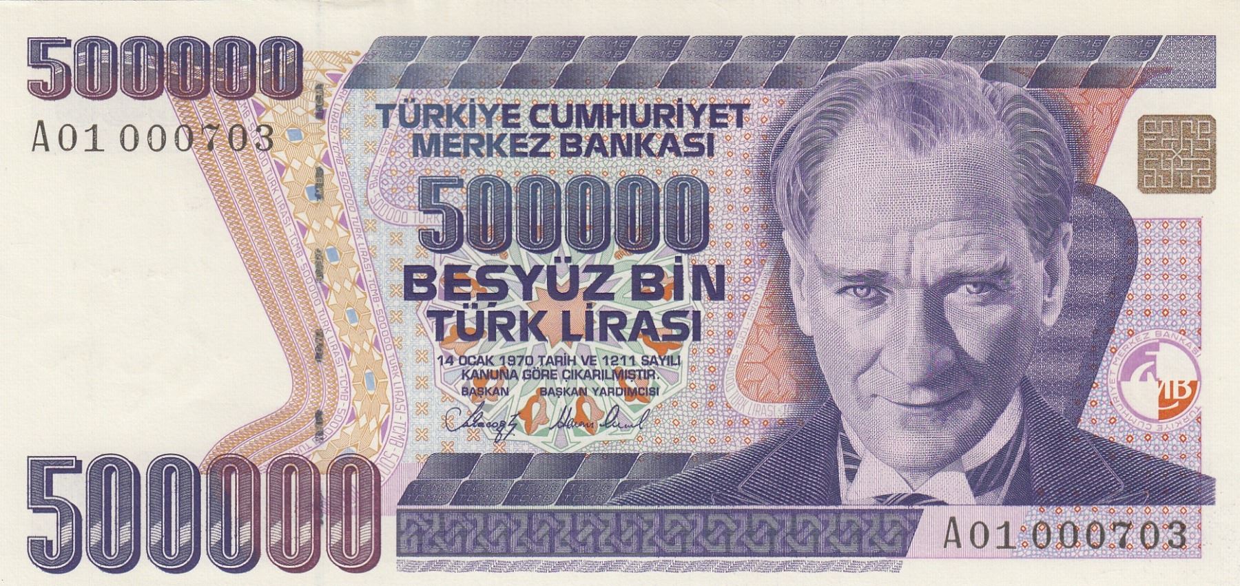 Turkey, 500.000 Lira, 1993, UNC, p208a, 7/1. Emission, "A01" and "LOW SERIAL NUMBER