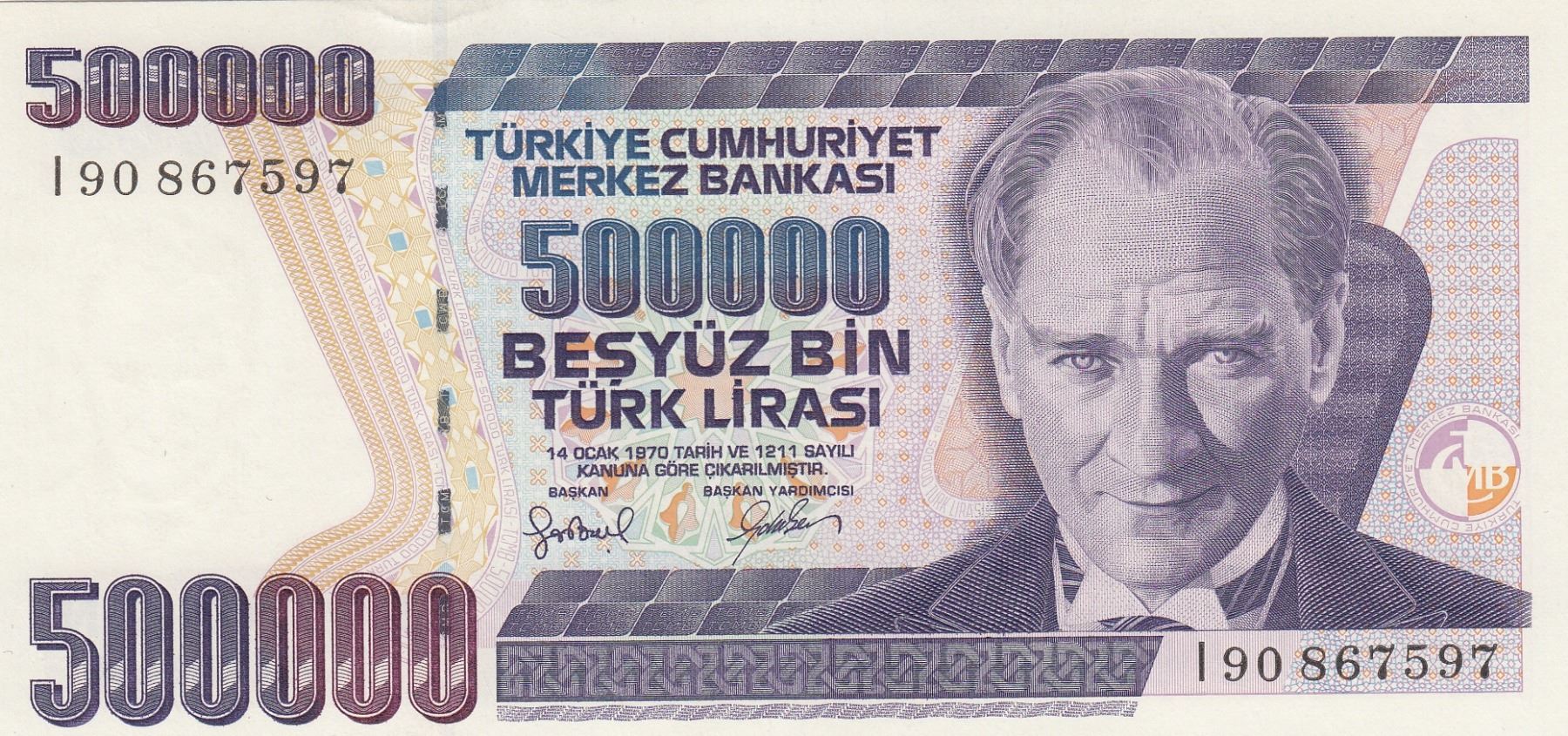 Turkey, 500.000 Lira, 1997, UNC, p212, 7/4. Emission, "I90" last prefix