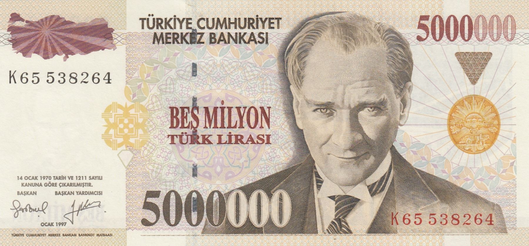 Turkey, 5.000.000 Lira, 1997, UNC, p210b, 7/1. Emission
