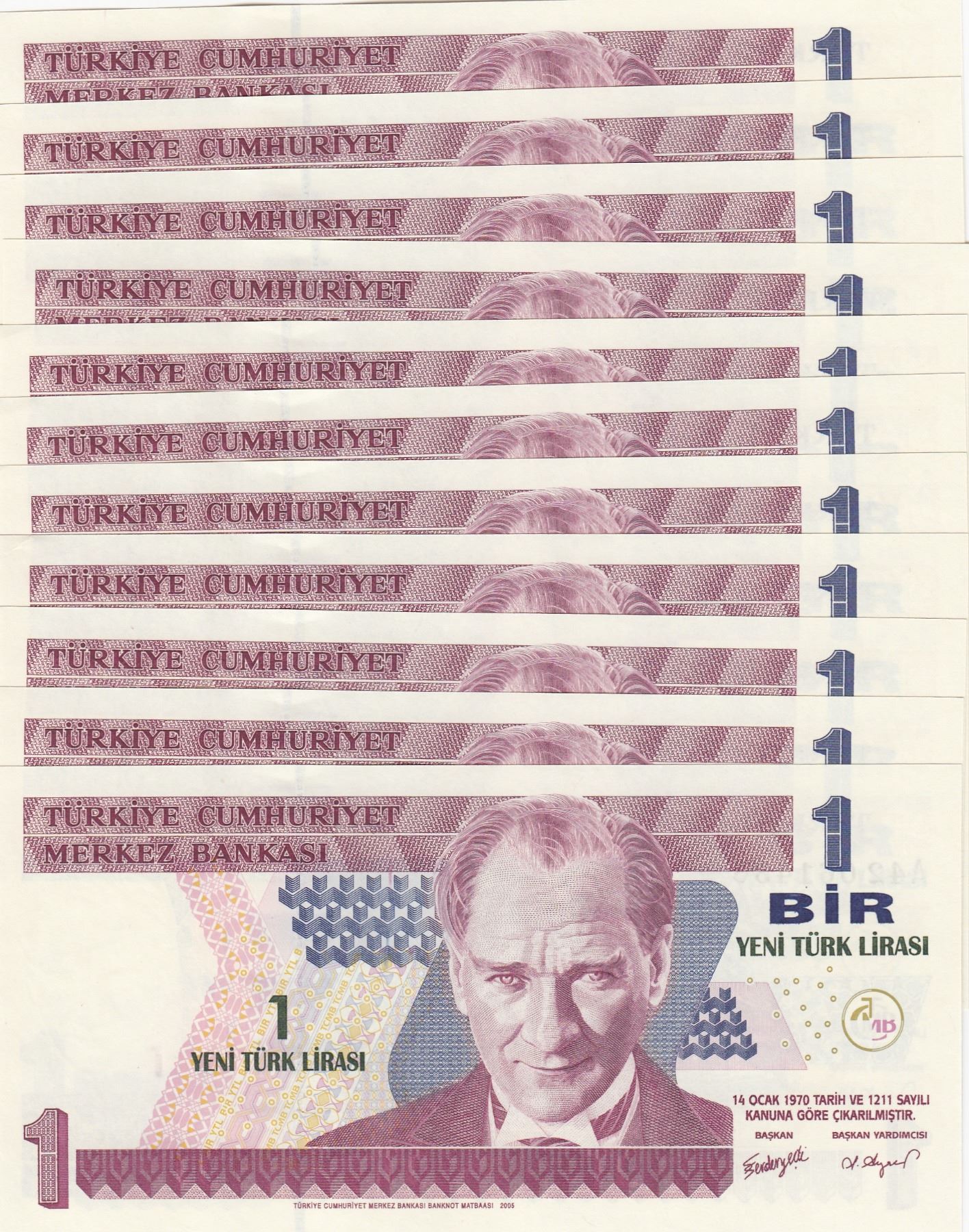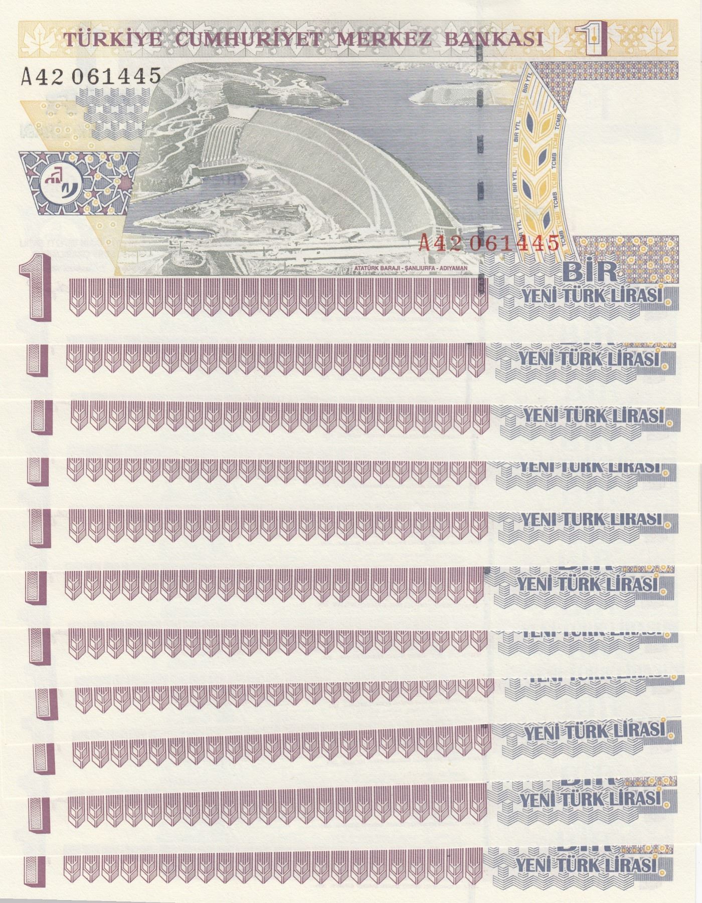 Turkey, 1 New Turkish Lira, 2005, UNC, p216, 8/1. Emission, (Total 11 consecutive banknotes)