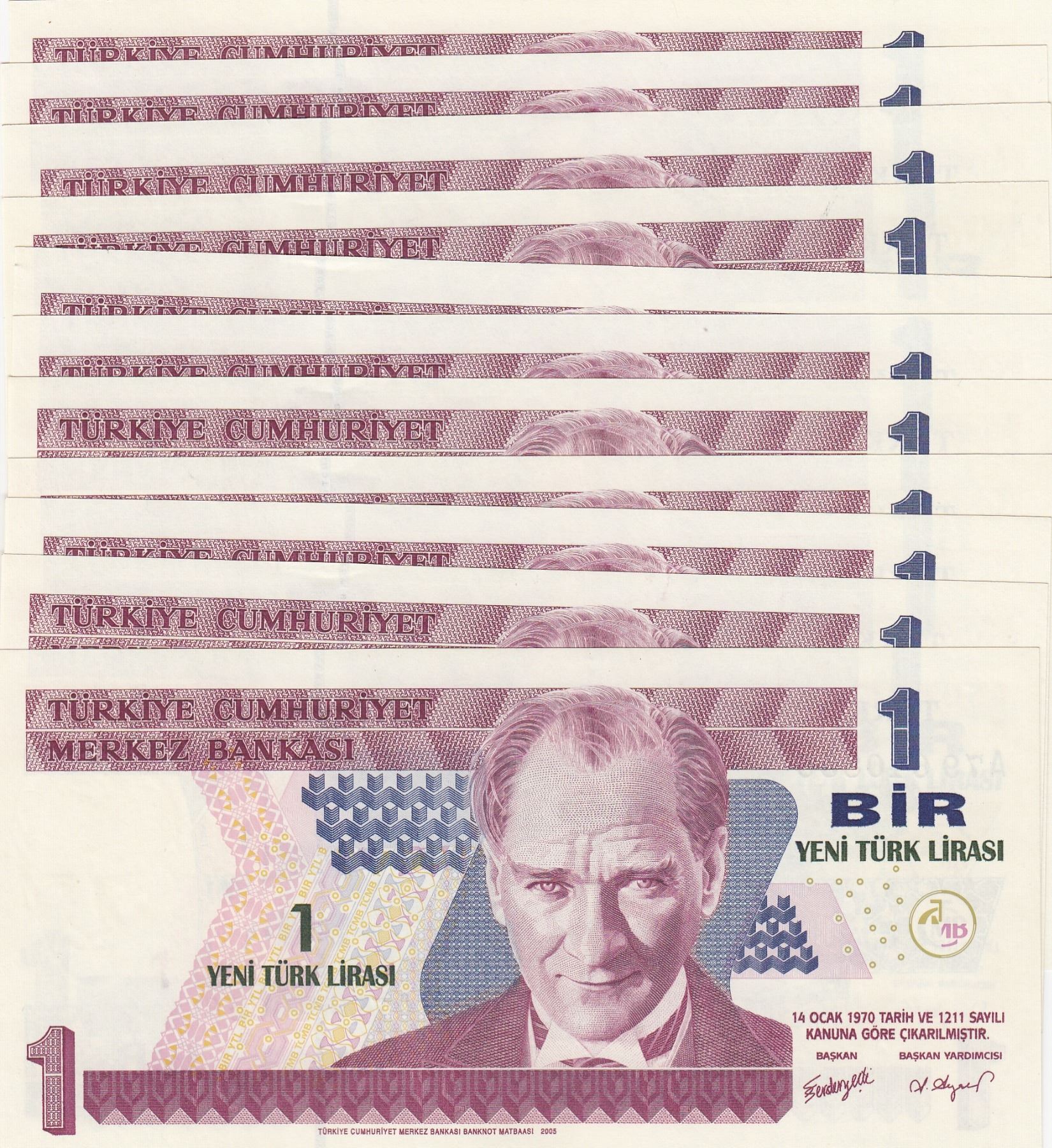 Turkey, 1 New Turkish Lira, 2005, UNC, p216, 8/1. Emission, (Total 11 banknotes)