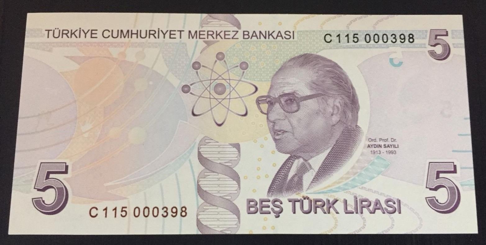Turkey, 5 New Turkish Lira, 2005, UNC, p217, 8/1. Emission, LOW SERIAL NUMBER