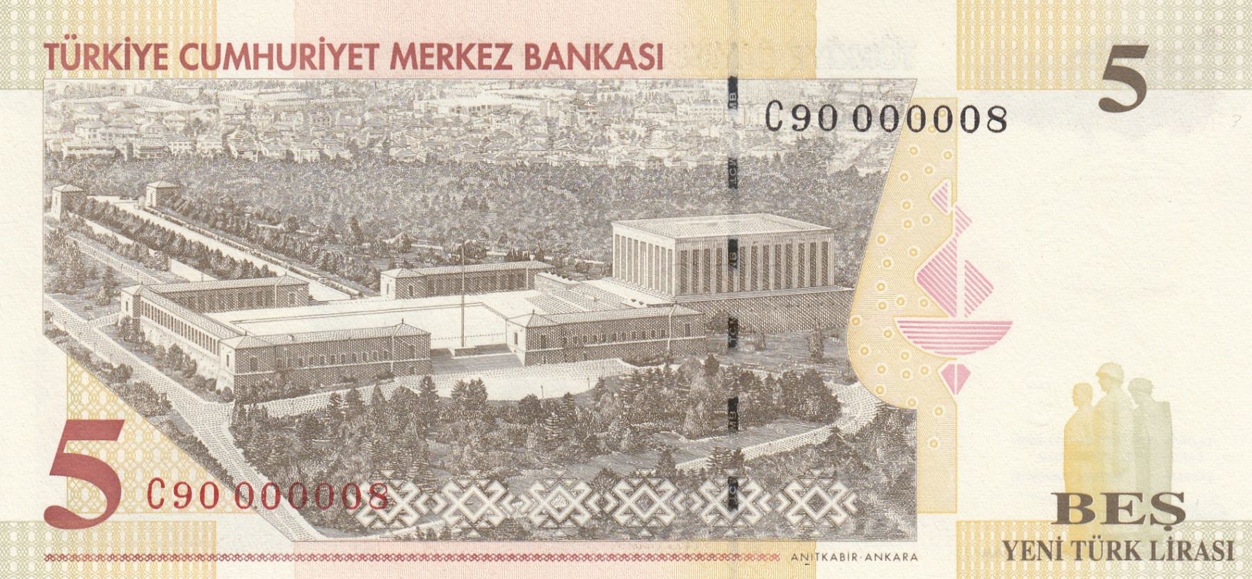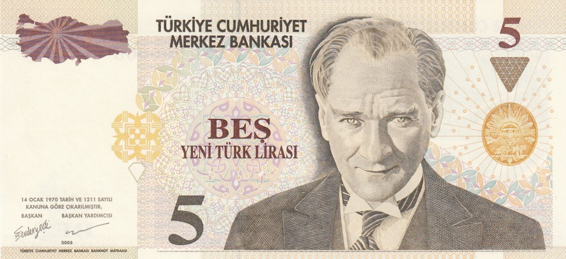 Turkey, 5 New Turkish Lira, 2005, UNC, p217, 8/1. Emission, LOW SERIAL NUMBER