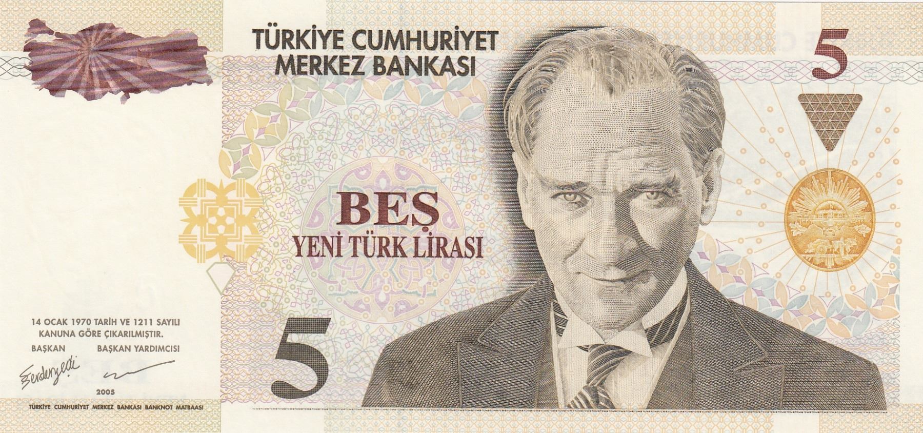 Turkey, 5 New Turkish Lira, 2005, UNC, p217, 8/1. Emission, LOW SERIAL NUMBER