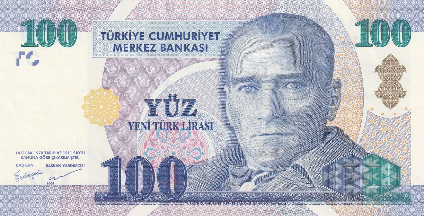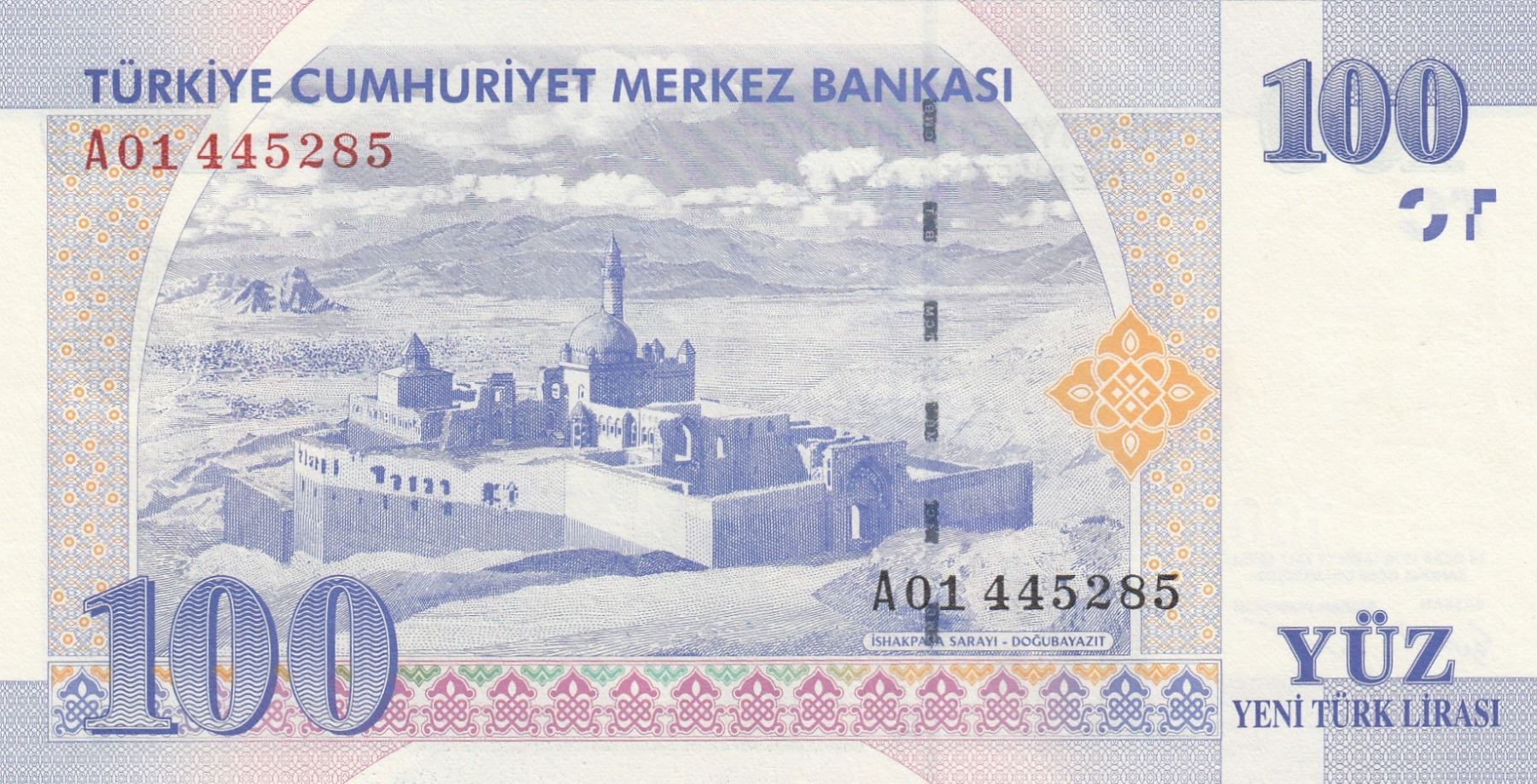 Turkey, 100 New Turkish Lira, 2005, UNC, p221, 8/1. Emission, "A01" first prefix.
