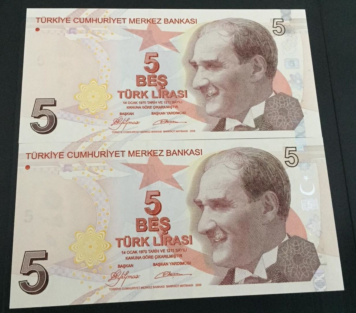 Turkey, 5 Lira, 2009, UNC, p222a, 9/1. Emission, (Total 2 banknotes)