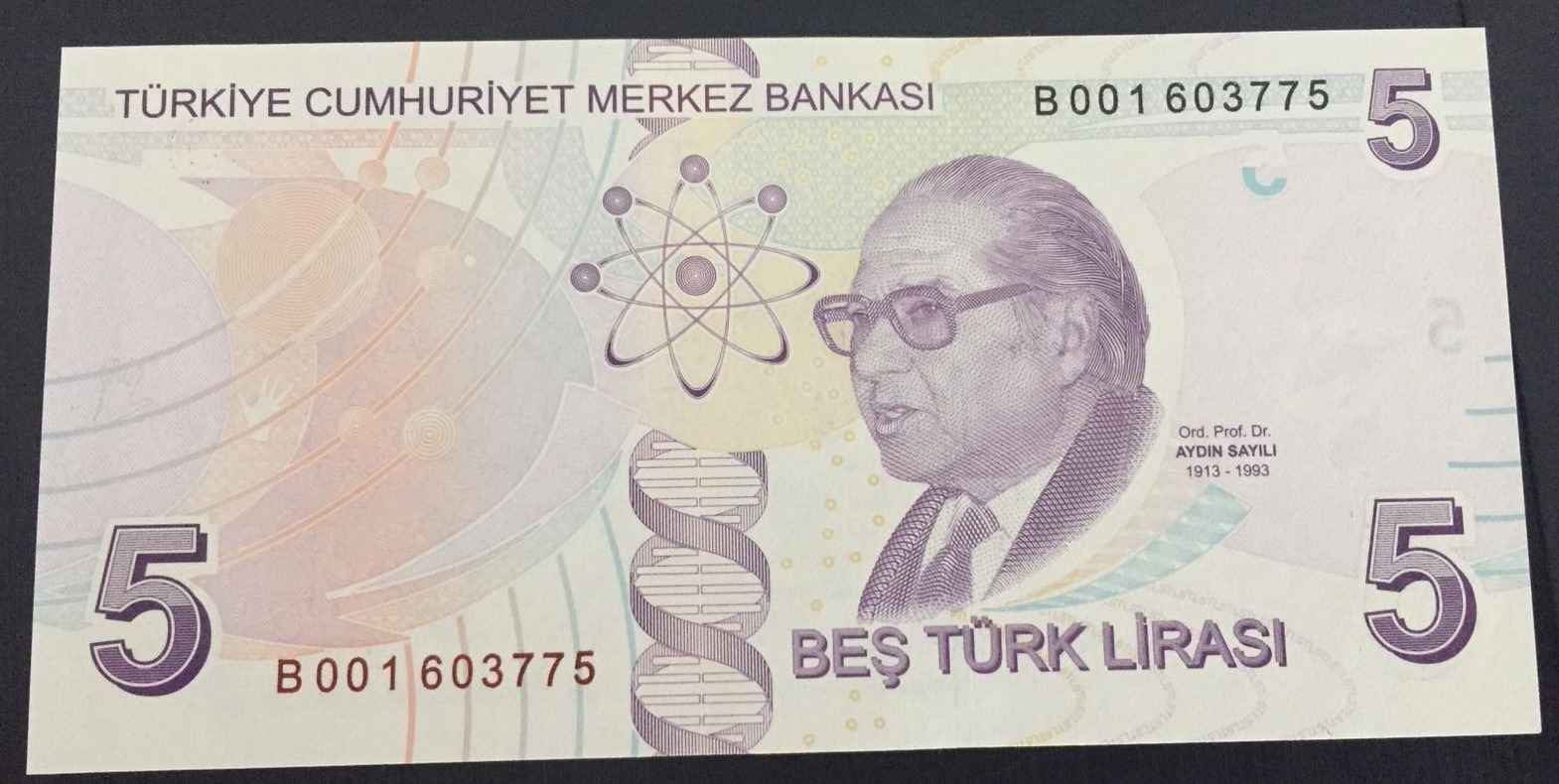 Turkey, 5 Lira, 2013, UNC, p222b, 9/2. Emission, "B001" first prefix.