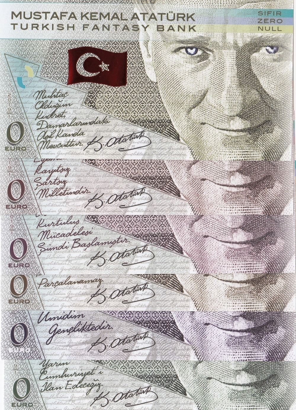 Türkiye, 0 Euro, 2019, UNC, FANTASY BANKNOTES, (Total 6 banknotes)