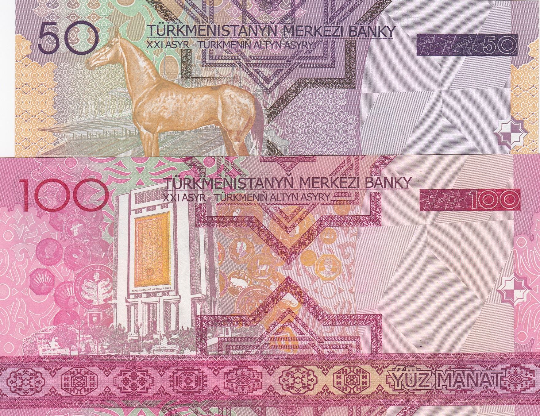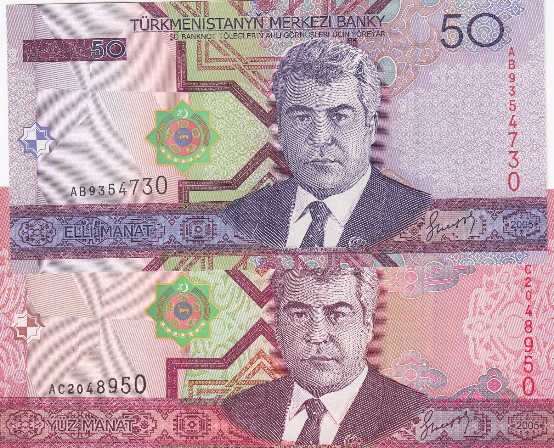 Turkmenistan, 50 Manat and 100 Manat, 2005, UNC, p17/p18, (Total 2 banknotes)