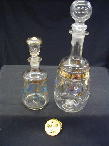 TURN OF THE CENTURY BRISTOL HND. PTD. DECNATERS INCLUDES (1) 8 1/4in FLORAL W/STOPPER EXCELLENT, (1) 12in FLORAL W/GOLD ACCENTS W/STOPPER , 3PC EXCELLENT
