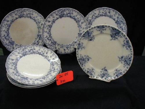 TURN OF THE CENTURY, ENGLISH, GRINDLEY, DINNERWARE INCLUDES (1) 8in PLATE ARABIC EXCELLENT, (6) 8in PLATES FERN (2 W/CENTER GLAZE POP 1 W/BROWNING), SEMI PORC., 8 PCS