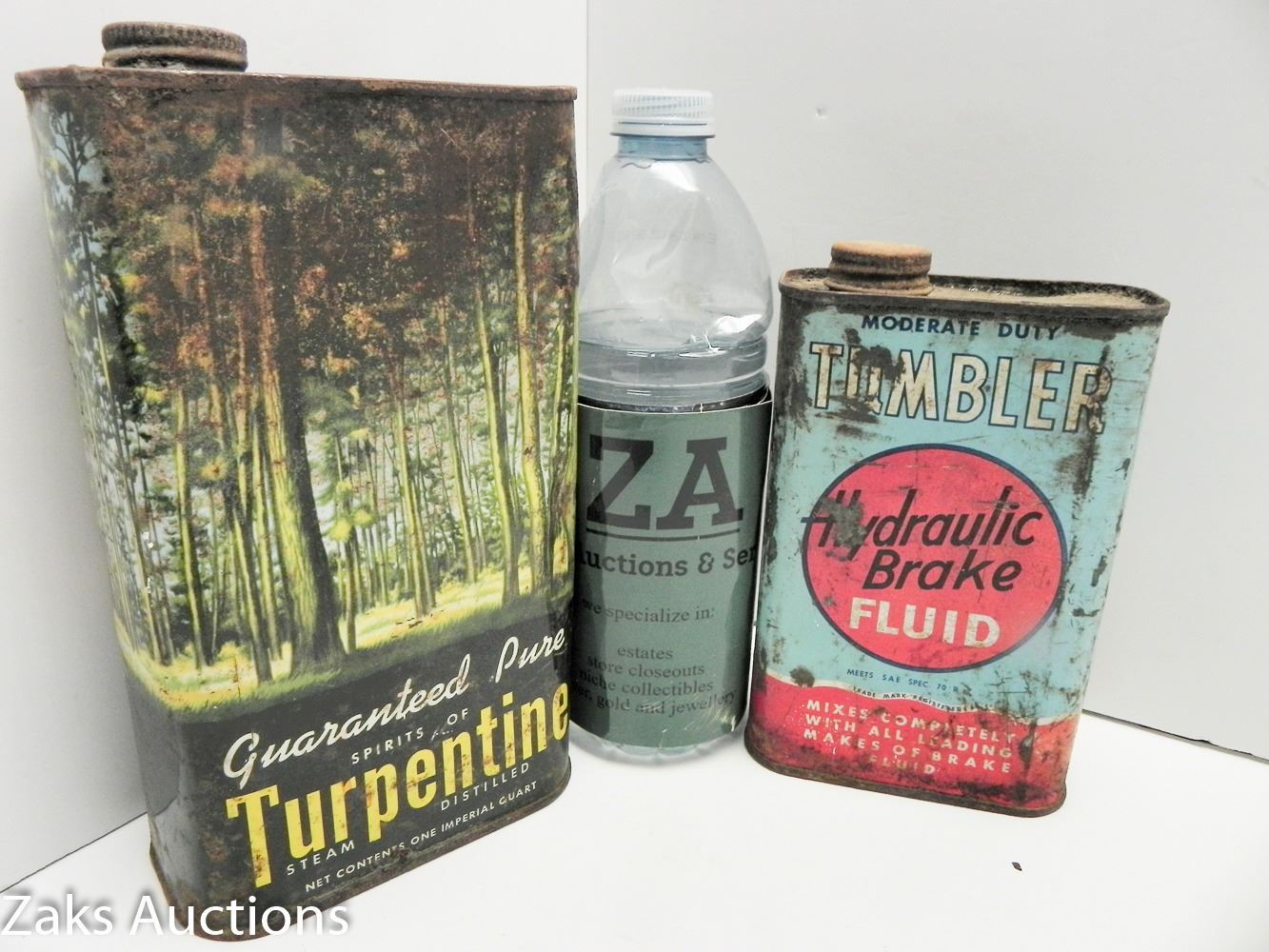TURPENTINE STEAM DISTILLED AND TUMBLER HYDRAULIC BRAKE FLUID TINS