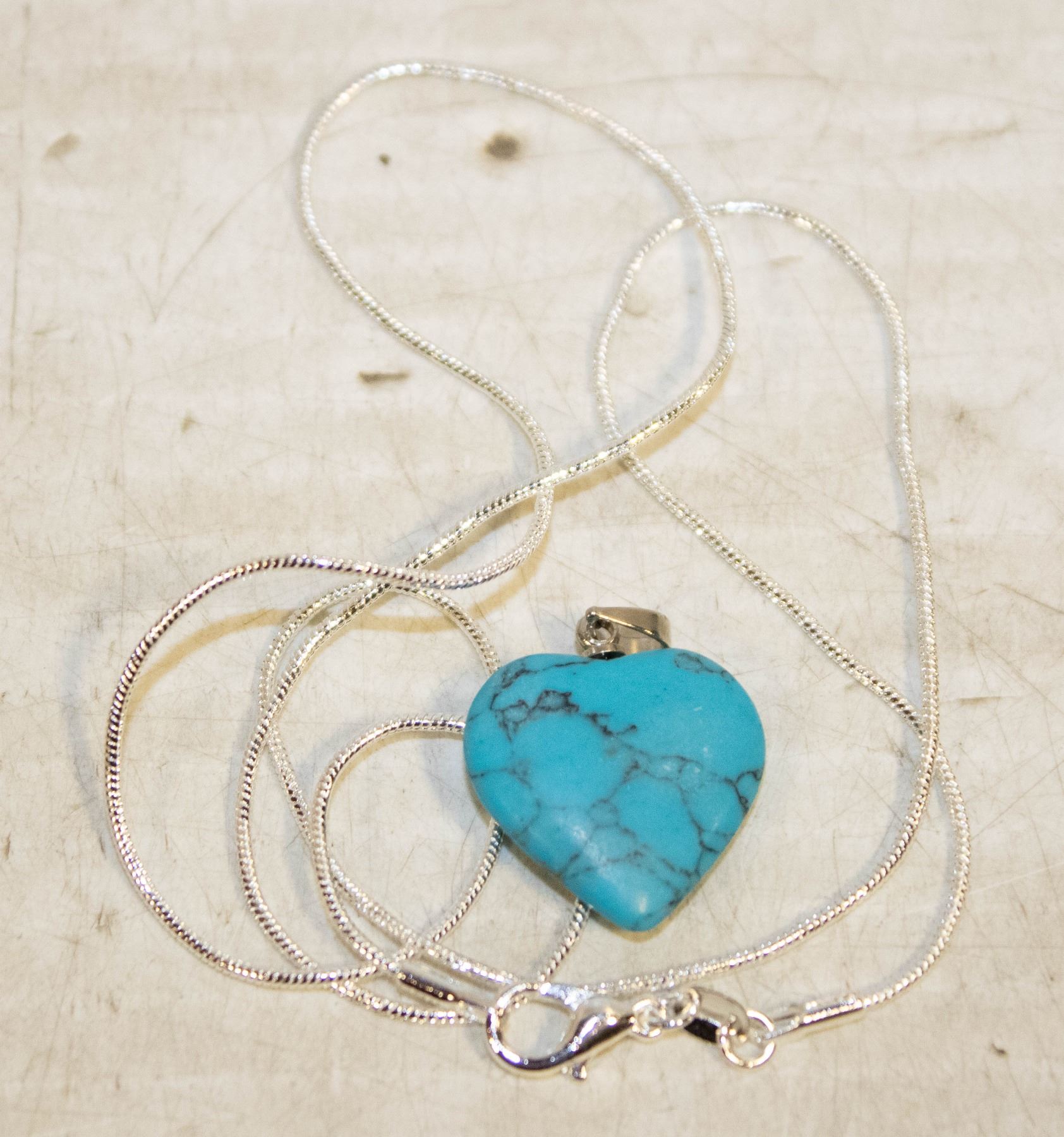 TURQUISE STONE HEART PENDANT WITH 24" CHAIN