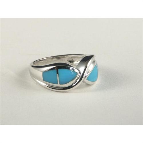 RING: Graceful 14k white gold lady's ring inlaid with robin's egg turquoise. The turquoise is caliber cut and opaque. Appraisal included.