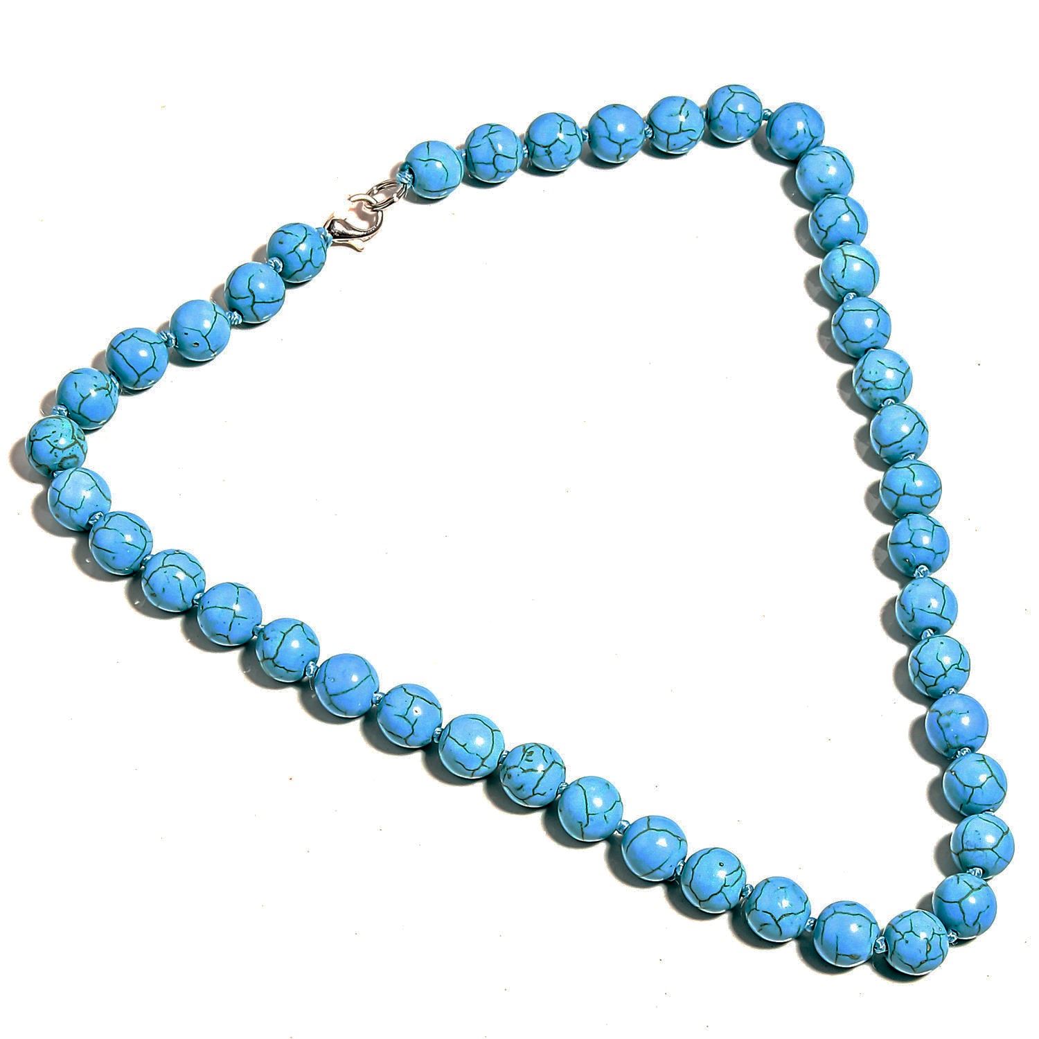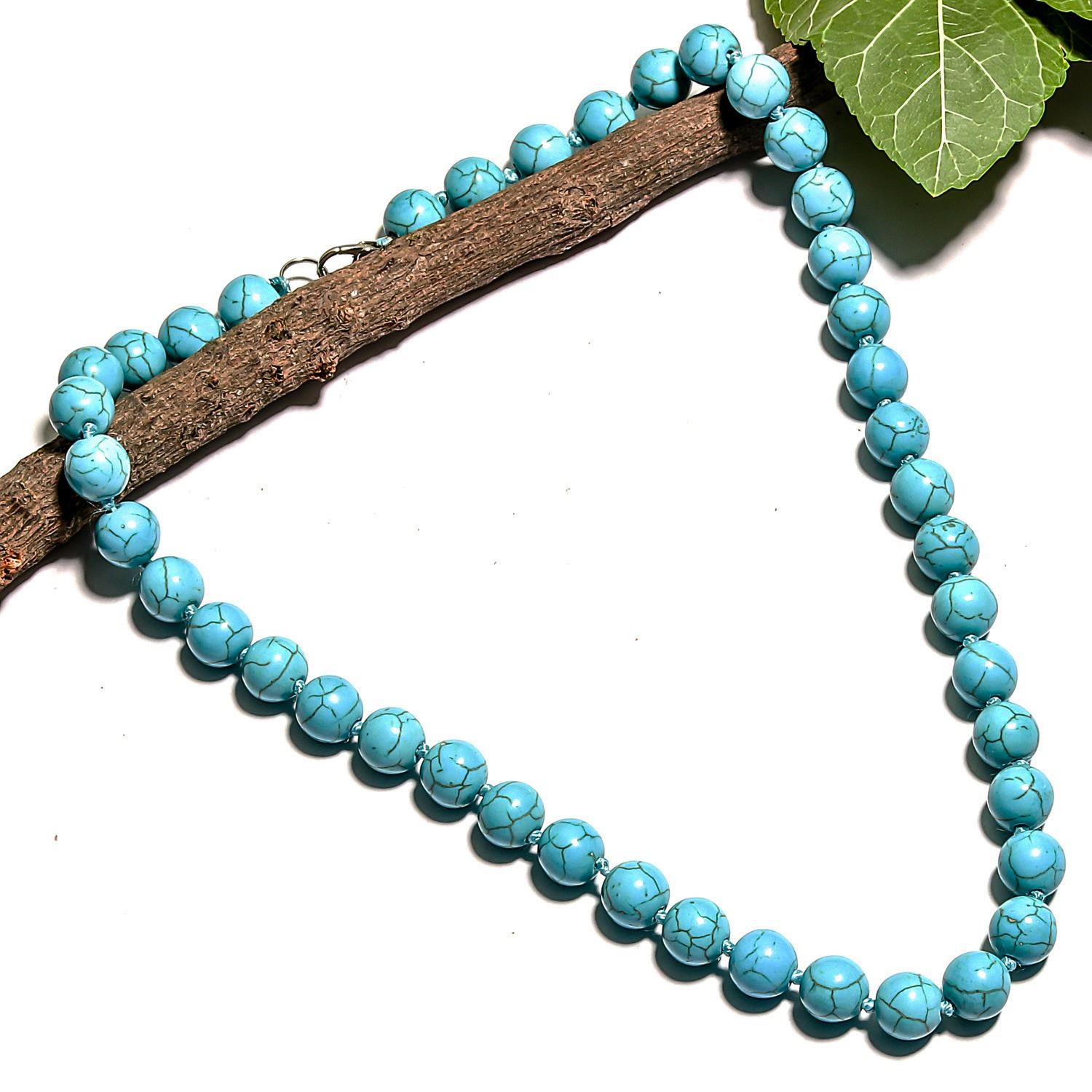 NATURAL TURQUOISE GEMSTONE NECKLACE JEWELRY 18" , Jewelry Type : Necklace , Gemstone : Turquoise , Gemstone Shape : Round , Gemstone Shape : 12mm , Gemstone Color : Blue , Necklace Size : 18 Inches , Metal : White Brass , Metal Purity : Silver Plated , Total Weight : 51.70 Gram , Product Code : SGJMXNEC1023