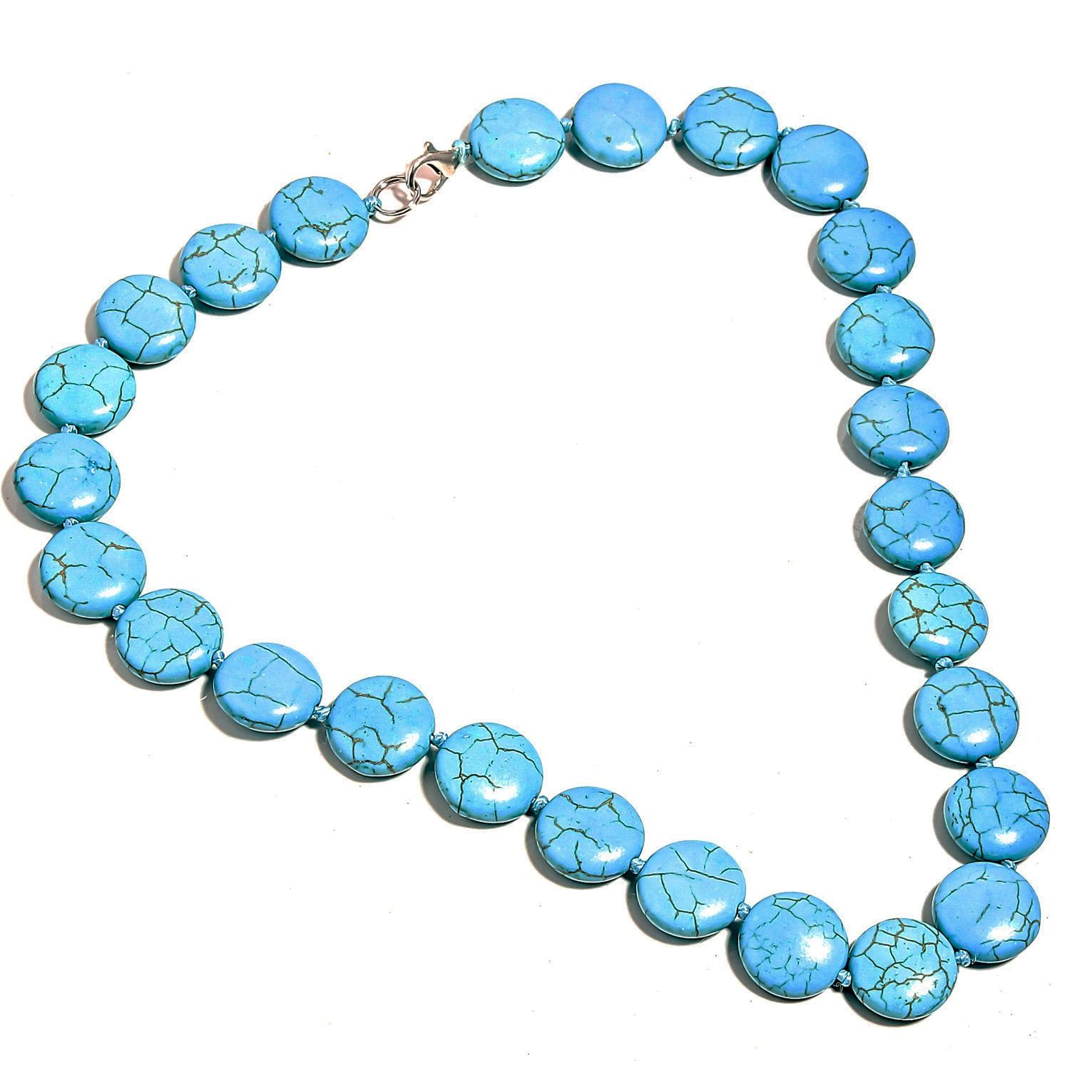 NATURAL TURQUOISE GEMSTONE NECKLACE JEWELRY 18" , Jewelry Type : Necklace , Gemstone : Turquoise , Gemstone Shape : Round , Gemstone Size : 15mm , Gemstone Color : Blue , Necklace Size : 18 Inches , Metal : White Brass , Metal Purity : Silver Plated , Total Weight : 58.10 Gram , Product Code : SGJMXNEC1008