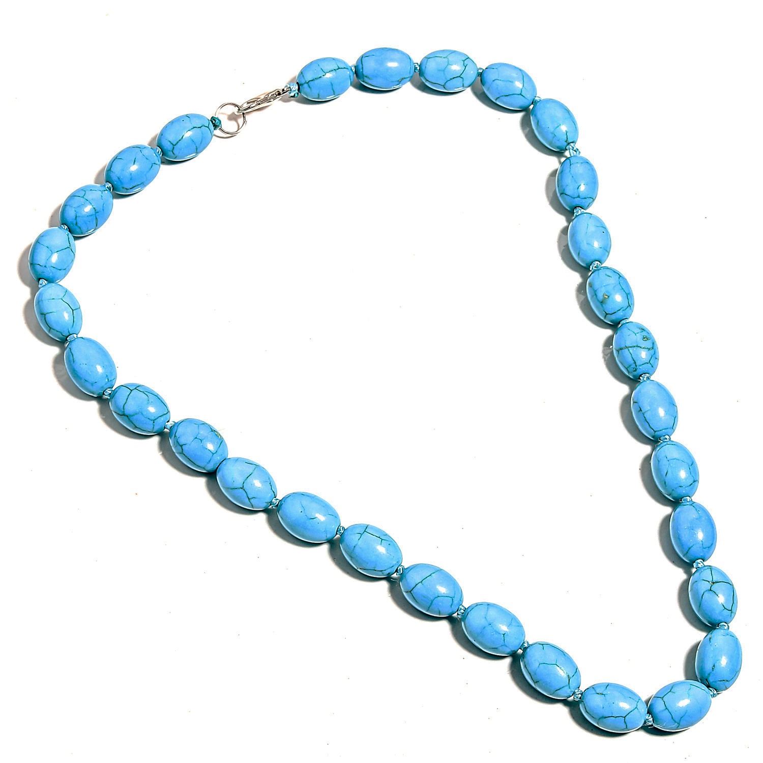 NATURAL TURQUOISE GEMSTONE NECKLACE JEWELRY 18" , Jewelry Type : Necklace , Gemstone : Turquoise , Gemstone Shape : Oval , Gemstone Size : 10x14 , Gemstone Color : Blue , Necklace Size : 18 Inches , Metal : White Brass , Metal Purity : Silver Plated , Total Weight : 46.50 Gram , Product Code : SGJMXNEC1025