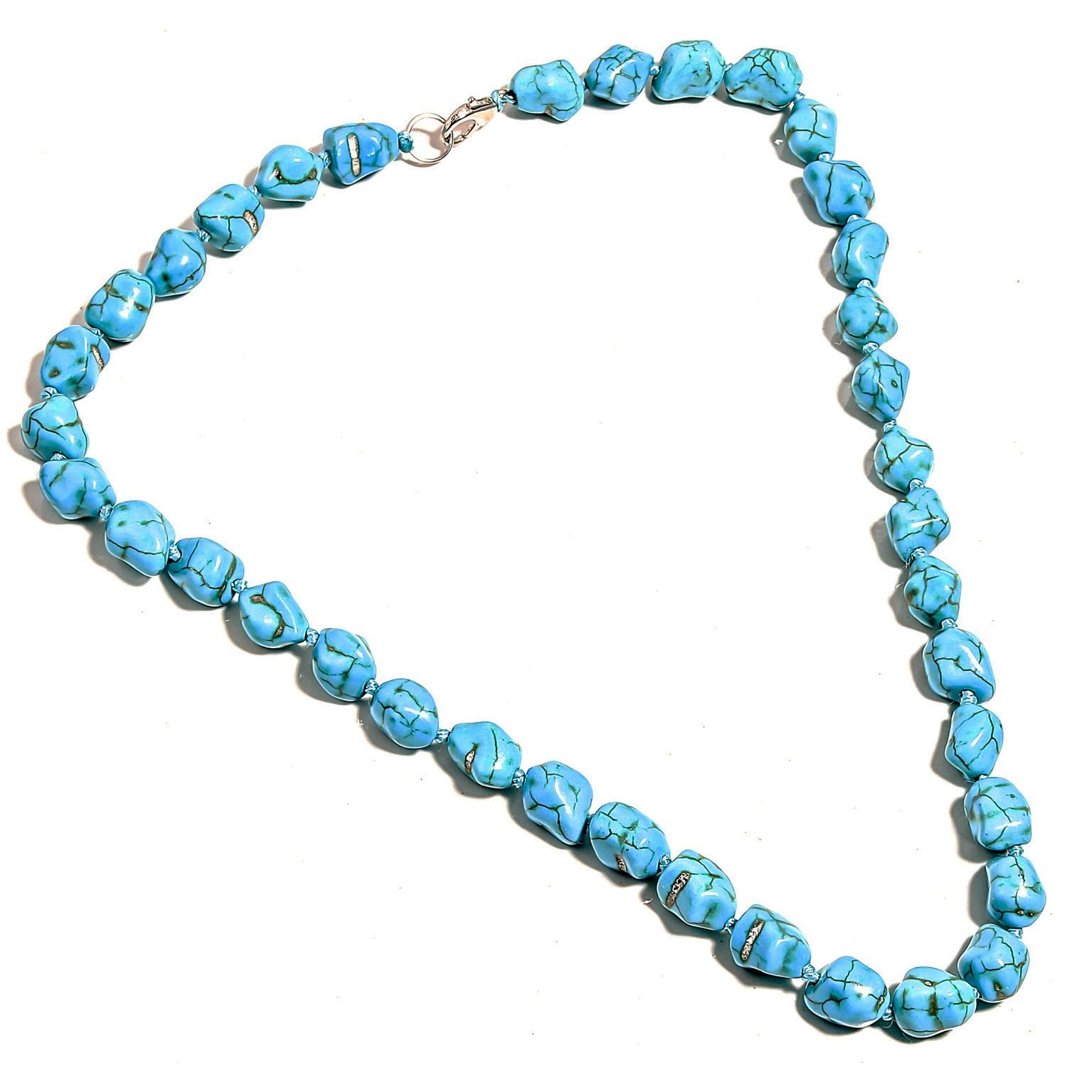 NATURAL TURQUOISE GEMSTONE NECKLACE JEWELRY 18" , Jewelry Type : Necklace , Gemstone : Turquoise , Gemstone Shape : Fancy , Gemstone Color : Blue , Necklace Size : 18 Inches (With Adjustable Links) , Metal : White Brass , Metal Purity : Silver Plated , Total Weight : 43.20 Gram , Product Code : SGJMXNEC1011