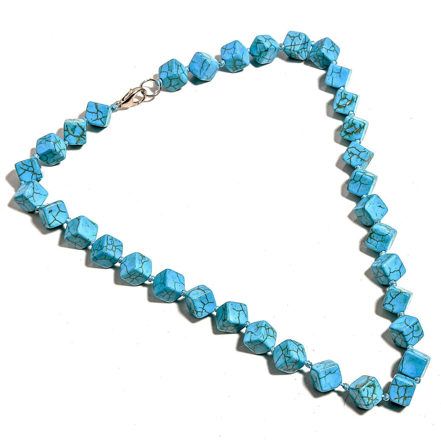 NATURAL TURQUOISE GEMSTONE NECKLACE JEWELRY 18" , Jewelry Type : Necklace , Gemstone : Turquoise , Gemstone Shape : Cube , Gemstone Size : 8mm , Gemstone Color : Blue , Necklace Size :  18 Inches , Metal : White Brass , Metal Purity : Silver Plated , Total Weight : 42.20 Gram , Product Code : SGJMXNEC1017