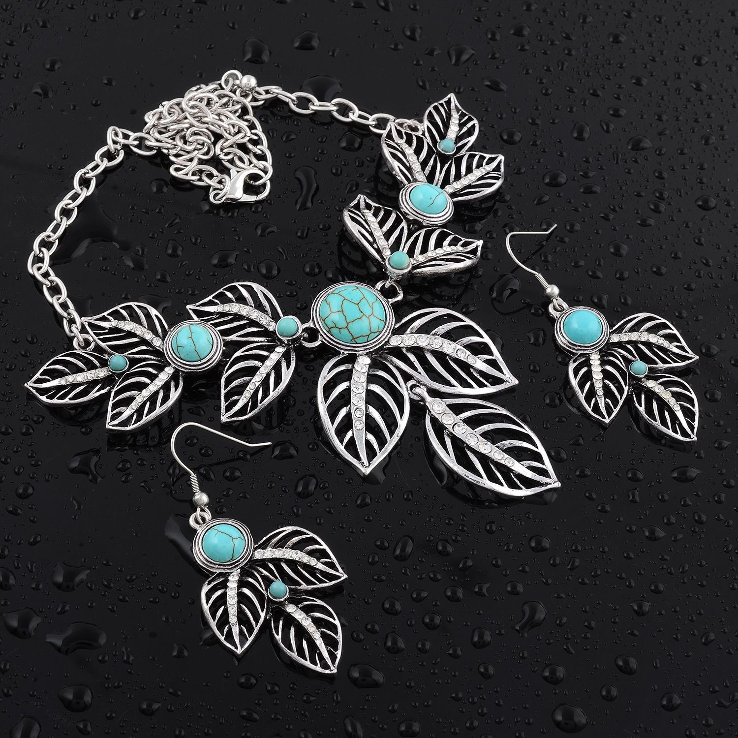 TURQUOISE GEMSTONE SILVER PLATED HANDMADE NECKLACE WITH EARRINGS , Gemstone : Turquoise , Necklace Size : 18 Inches (With adjustable links) , Necklace Weight : 54.300 Gram