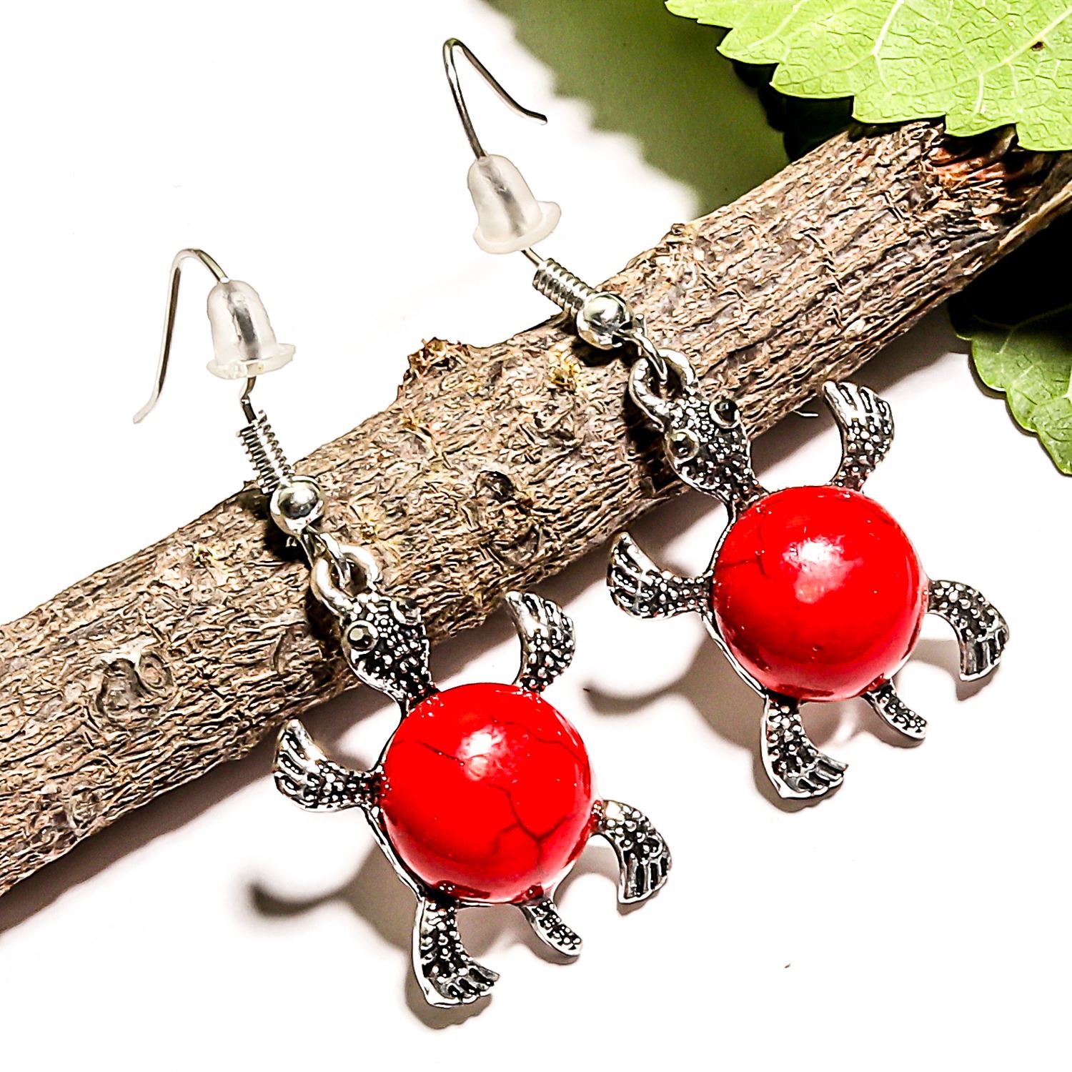 RED TURQUOISE GEMSTONE SILVER PLATED HOOK EARRING JEWELRY 1.5" , Jewelry Type : Earring , Gemstone : Turquoise , Gemstone Size : 12x12mm , Gemstone Shape : Round , Gemstone Color : Red , Metal : White Brass , Metal Purity : Silver Plated , Earring Size : 1.5 Inches , Earring Weight : 5.70 Grams , Quantity : 1 Piece Earring , Product Code : SGJMXEAR1005