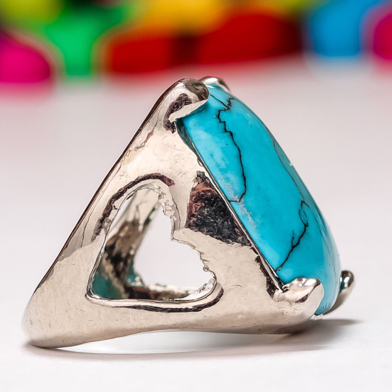 TURQUOISE GEMSTONE SILVER PLATED RING SIZE 9 , GEMSTONE - TURQUOISE , GEMSTONE COLOR - BLUE , STONE SHAPE - CUSHION , MAIN STONE SIZE - 22X17 MM , QUANTITY - 1 PIECE RING , WEIGHT - 13.00 GRAMS