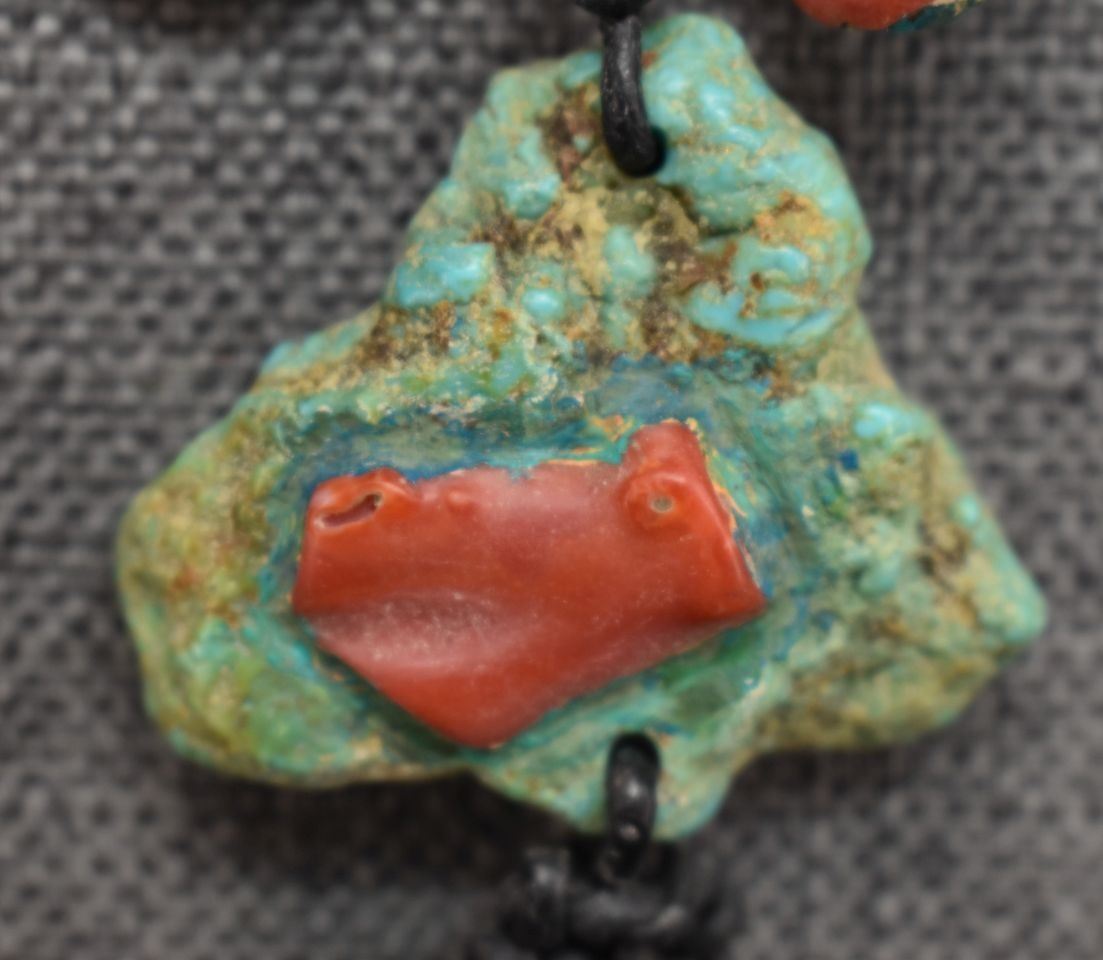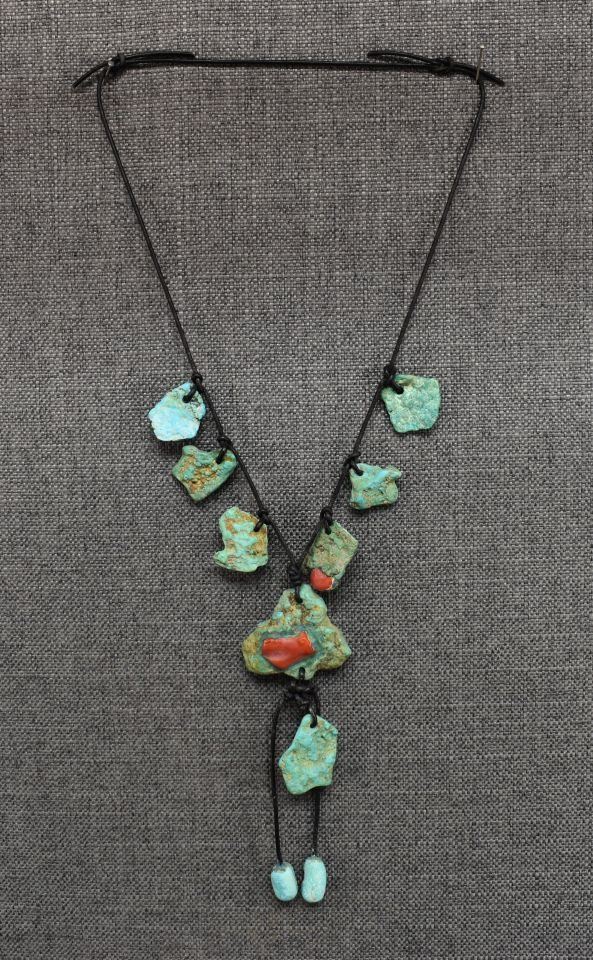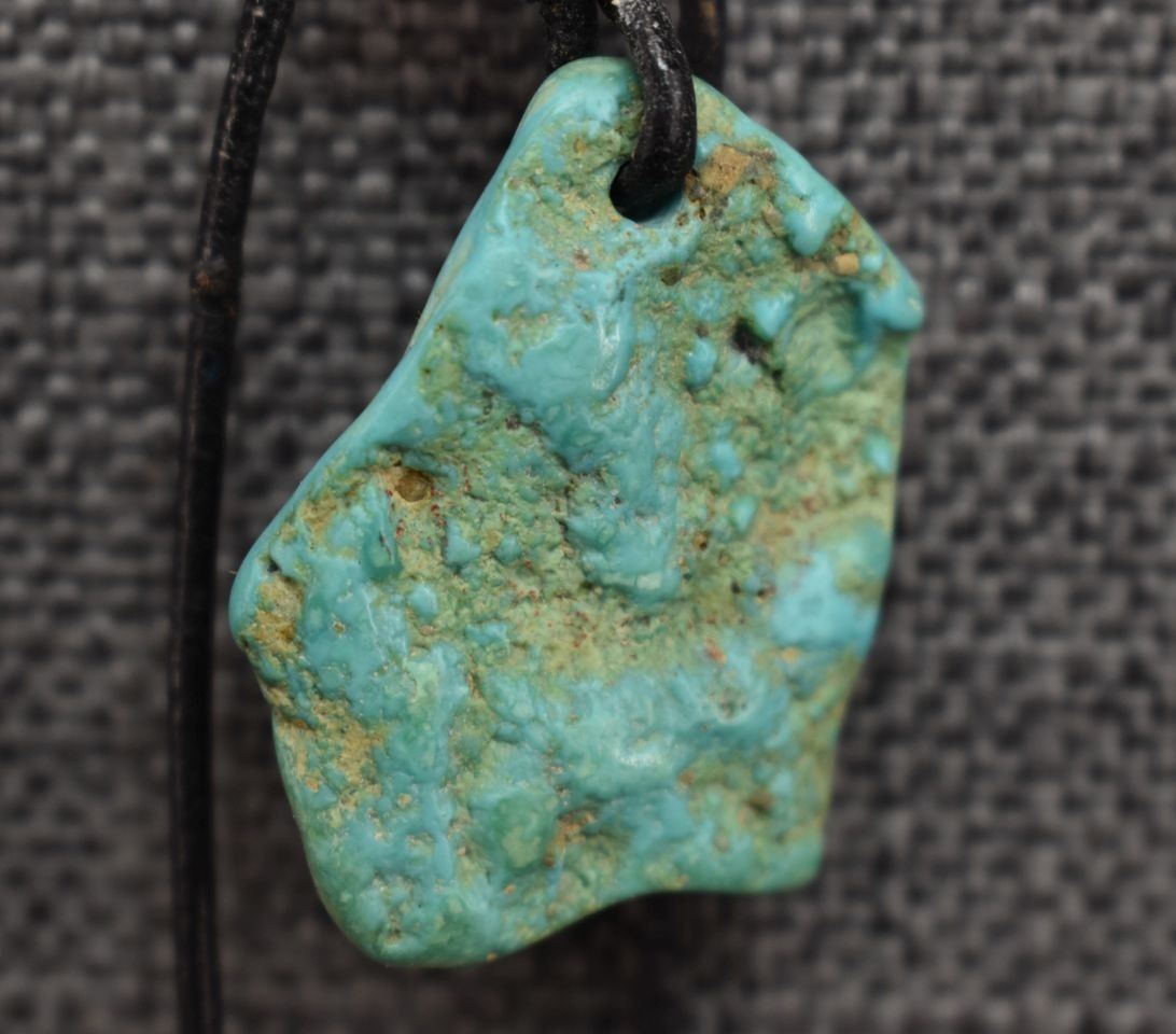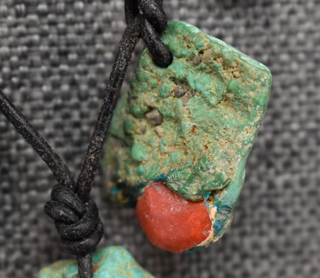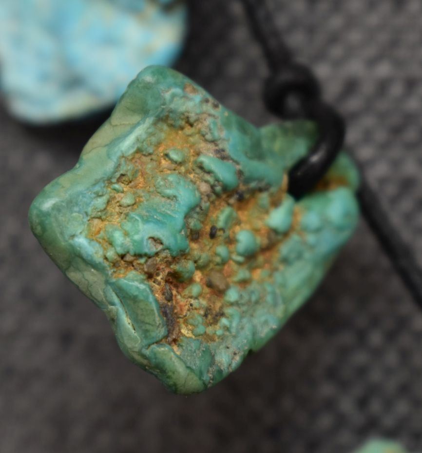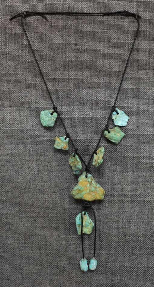 vintage commercial leather with turquoise nugget necklace 28" long 4.5" drops