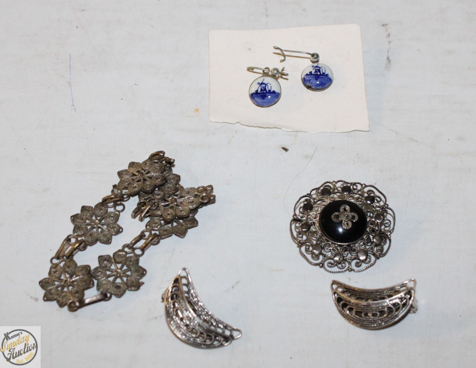 TURQUOISE/SILVER BRACELET+CLIP-ON EARRINGS