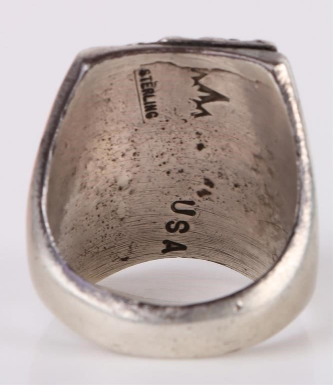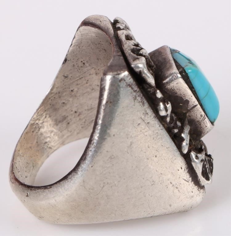 Turquoise southwest Navajo sterling silver men's ring with one large 17.7 X 12.2mm. Ring is stamped.