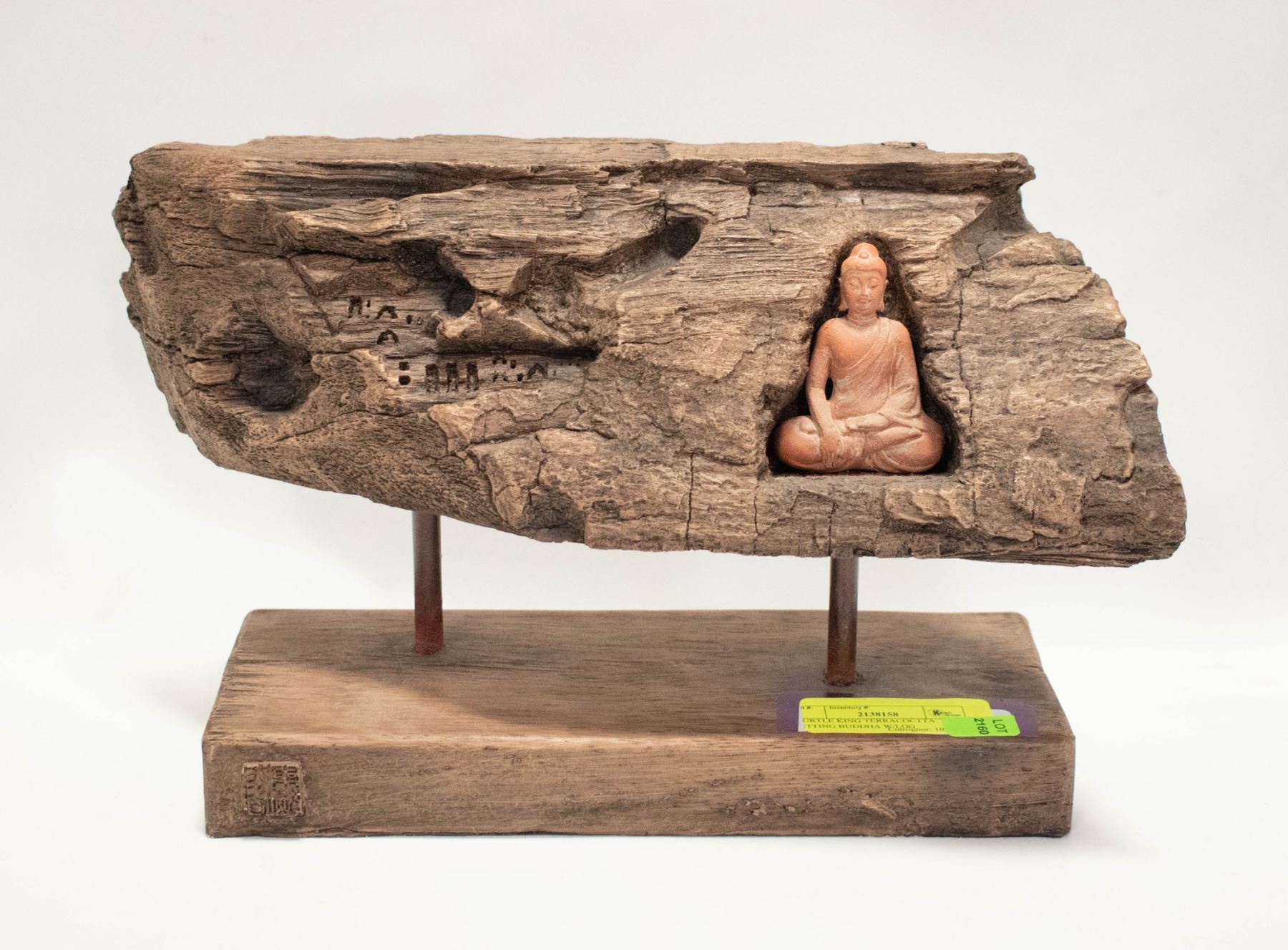 TURTLE KING TERRACOCTTA SITTING BUDDHA W/LOG