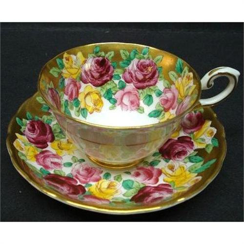 THIS IS GORGEOUS SET, HAND PAINTED, DEPICTING LUSH BURGUNDY AND YELLOW ROSES, ON THE GOLD BACKGROUND,MADE BY TUSCAN,FINE ENGLISH BONE CHINA, EXCELLENT - MINT CONDITION US BUYER TO PAY 7.00 FOR SHIPPING PLUS INSURANCE.THANKS.