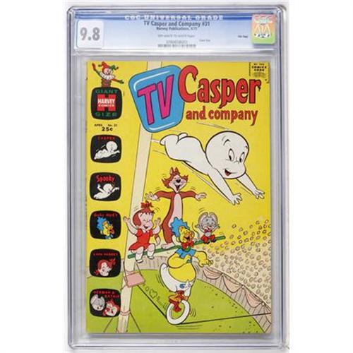 <B>TV Casper and Company #31 File Copy (Harvey, 1971) CGC NM/MT 9.8 Off-white to white pages.</B></I> Last 68 page issue. Overstreet 2007 NM- 9.2 value = $30. CGC census 1/08: 1 in 9.8, none higher.<BR><BR><b>Shipping:</b> Comics - Slabbed (certified) (<a target="_blank" href="http://www.heritageauctions.com/common/shipping.php">view shipping information</a>)