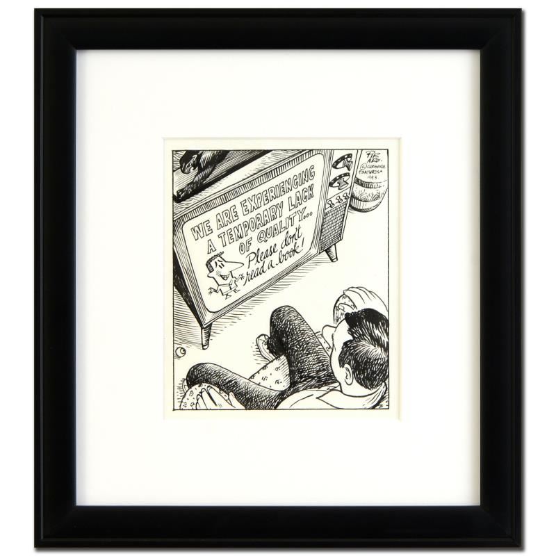 Enter a surreal and satirical world of twisted imagination and award winning creativity. "TV - Don't Read a Book" is an original pen & ink drawing on paper by Dan Piraro, creator of the critically acclaimed and award winning comic strip, Bizarro! This pie