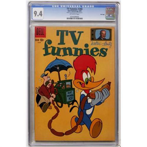 <B>TV Funnies #268 File Copy (Dell, 1959) CGC NM 9.4 Off-white pages.</B></I> CGC notes, "From the Random House Archives." Overstreet 2007 NM- 9.2 value = $55. CGC census 9/07: 3 in 9.4, 1 higher.<BR><BR><b>Shipping:</b> Comics - Slabbed (certified) (<a target="_blank" href="http://www.heritageauctions.com/common/shipping.php">view shipping information</a>)