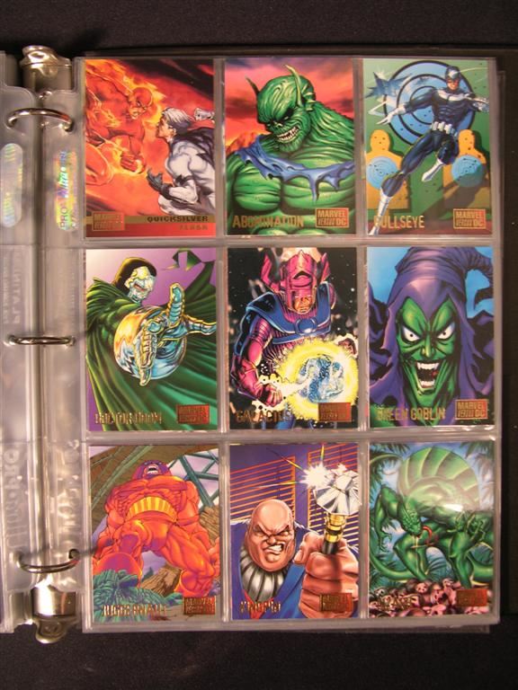 Three complete sets of trading cards in a single binder, these being for the animated Beetlejuice series (1990, Dart Flipcards), Buffy the Vampire Slayer (Ikon, 2000) and DC Vs. Marvel Comics (Fleer/Skybox, 1995).
