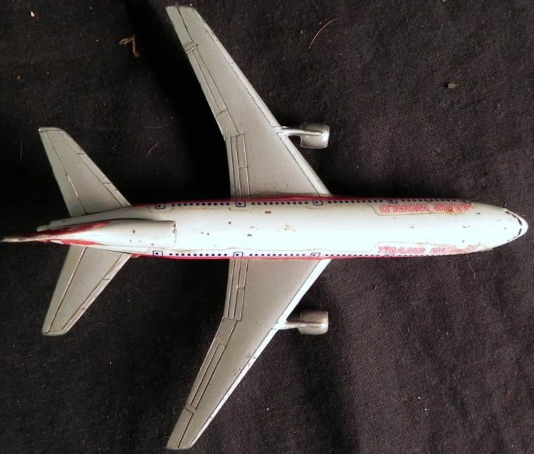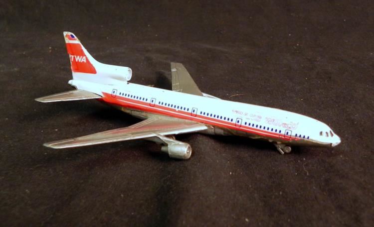 TWA DIECAST JET-LINTOY-LOCKHEED L1011 TTI-STAR-5.5"---WHEELS RETRACT--4.5" WINGSPAN