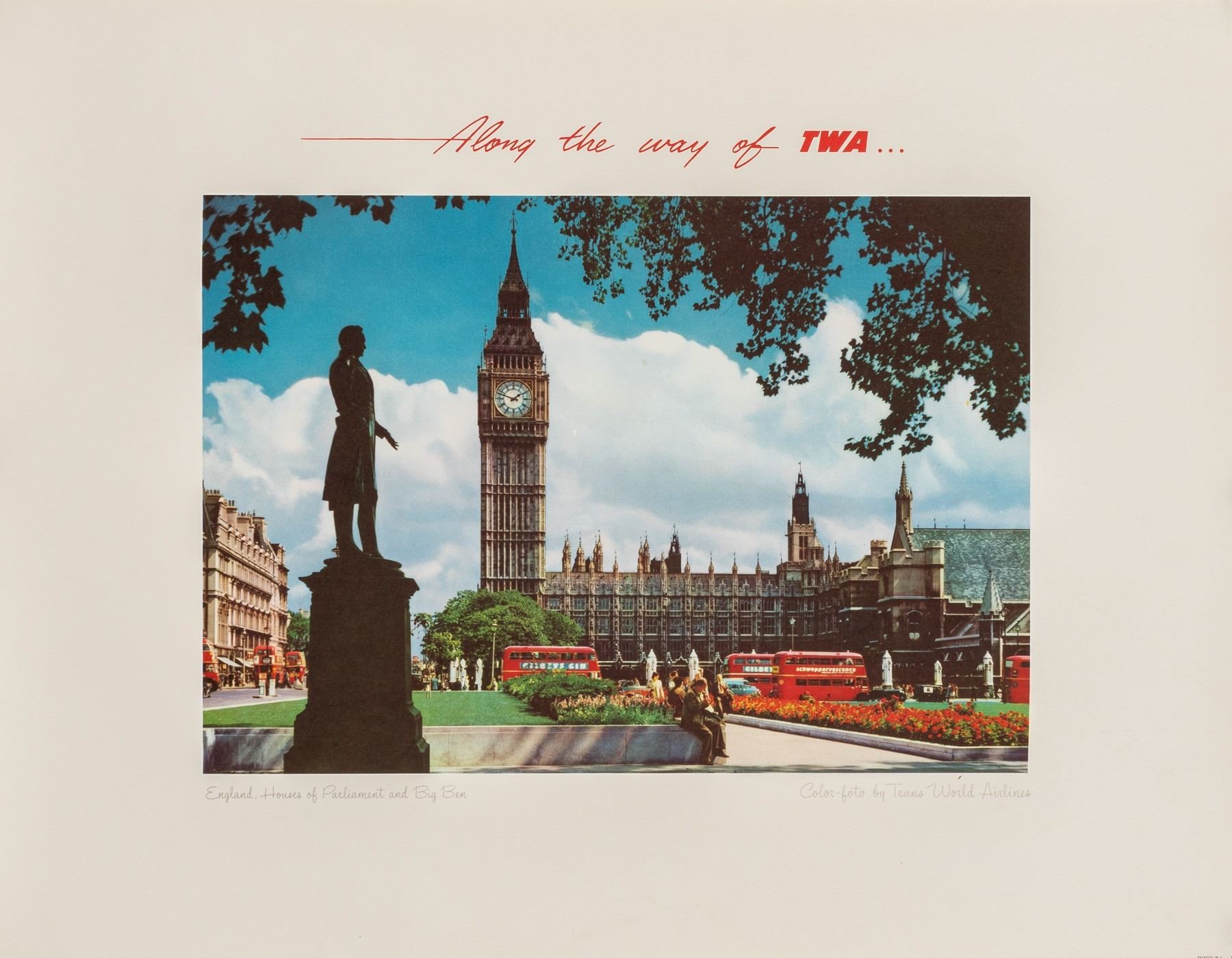 'Along the way of TWA...England, Houses of Parliament and Big Ben', Trans World Airlines, TWA, 1950s, 22 x 17 inches.