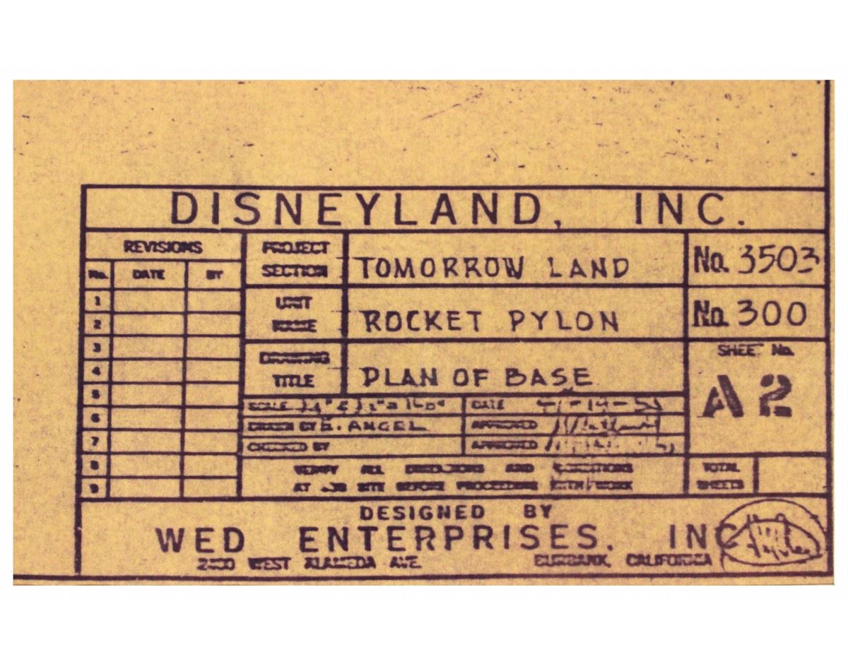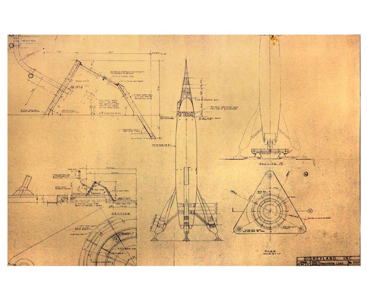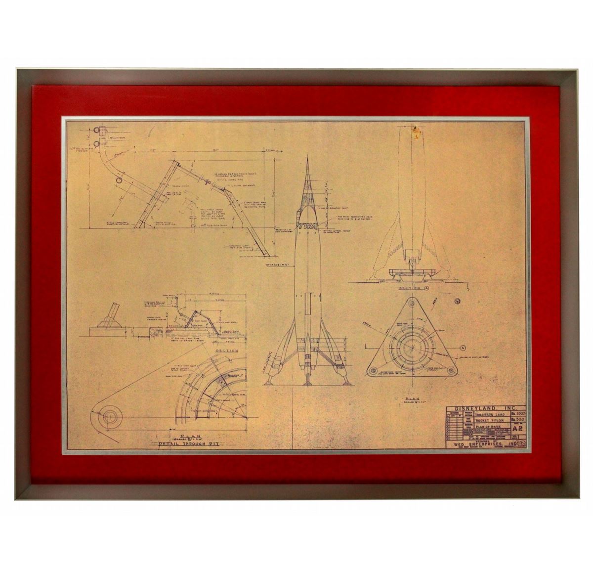 (Disneyland, 1955) Extremely rare construction-used blueprint featuring the Rocket to the Moon attraction. Blueprint measures 23.5 x 32.5 unframed and 30 x 39 in. in its current frame. In very good condition. Unexamined out of frame.