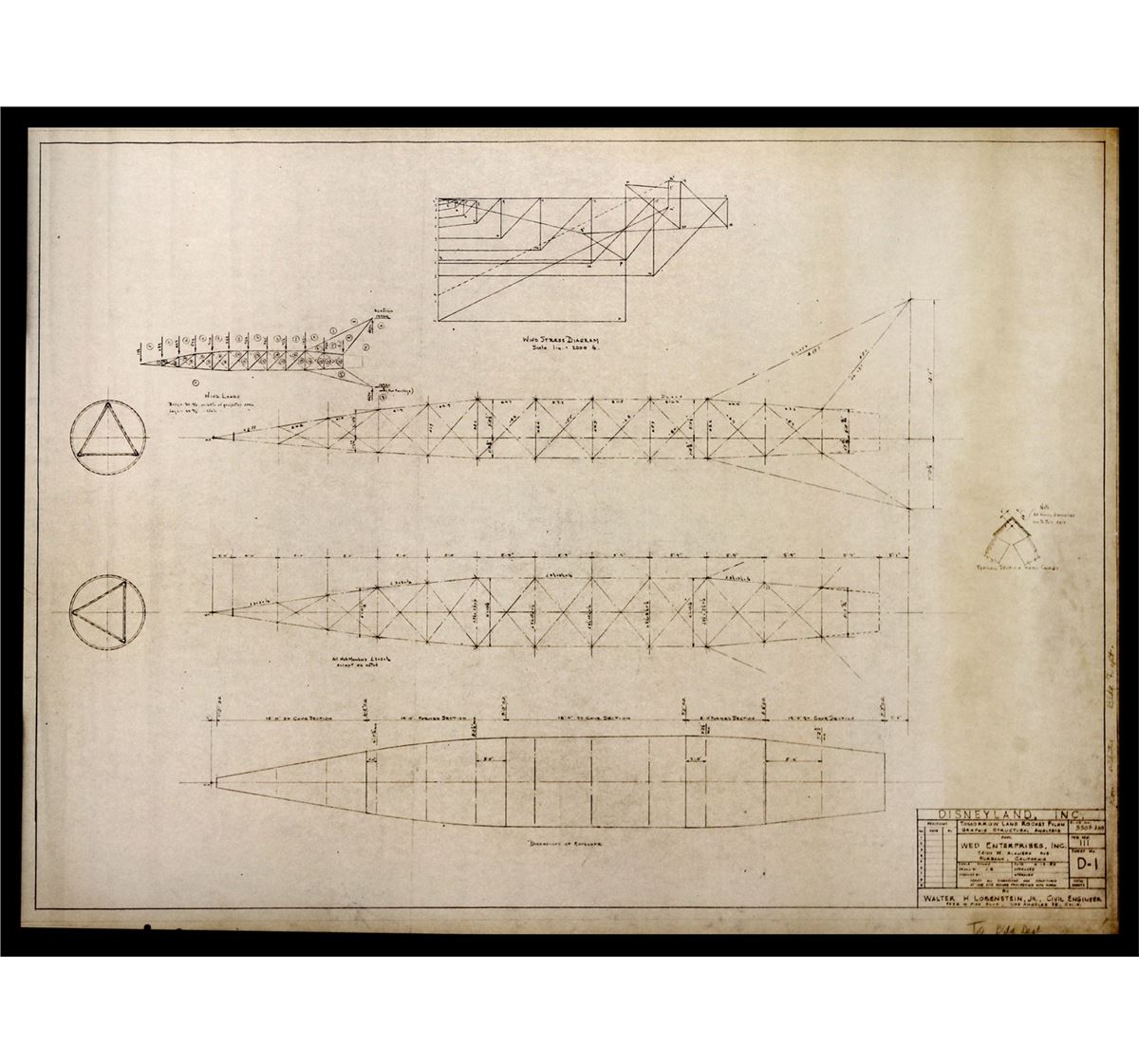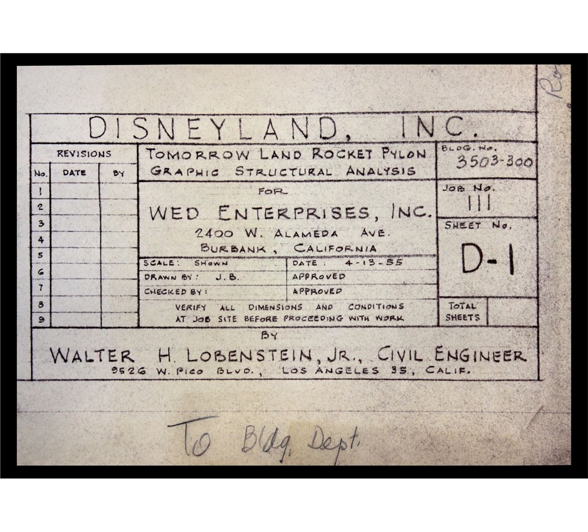 (Disneyland, 1955) Rare construction-used blueprint featuring pylon construction for the Rocket to the Moon attraction. In very good condition.