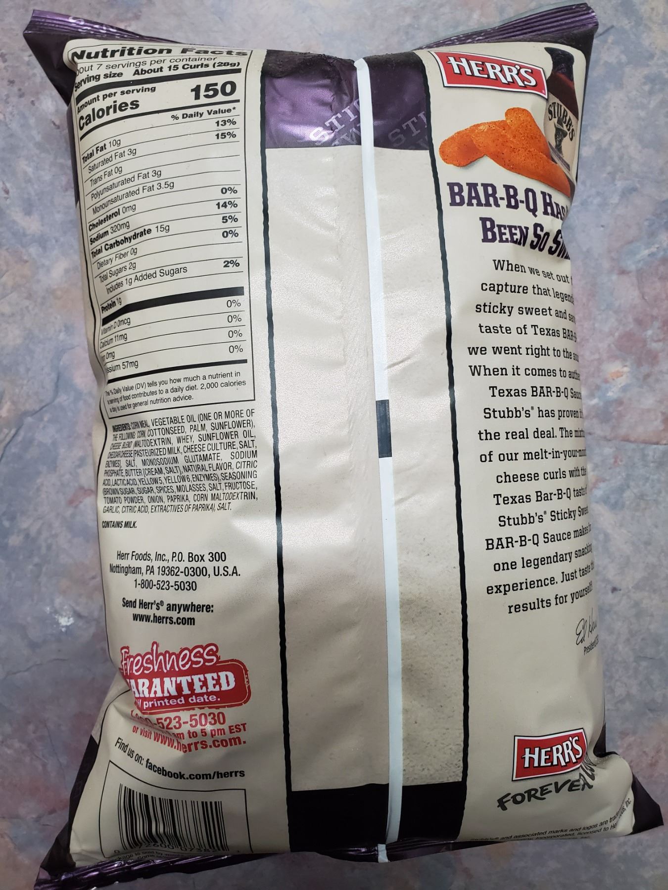 TWELVE BAGS OF HERR'S BBQ FLAVOURED CHEESE CURLS