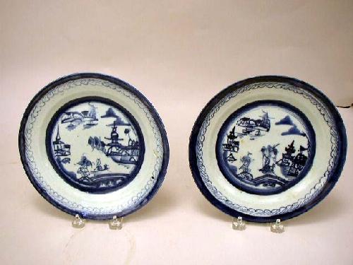 TWELVE CHINESE EXPORT PORCELAIN PLATES; Canton pattern, some losses, 8 1/2"d