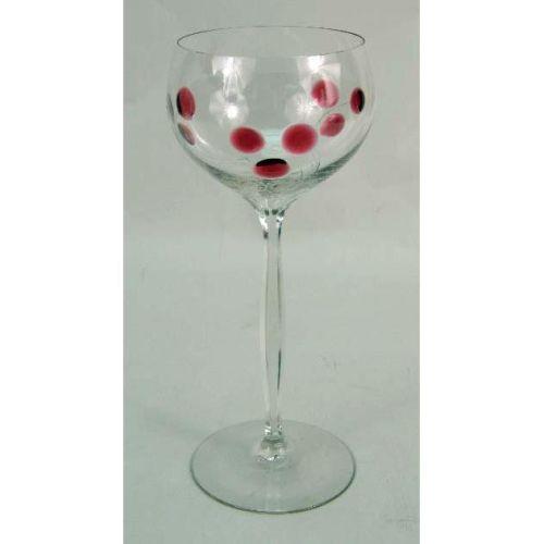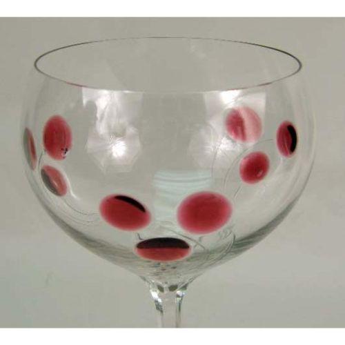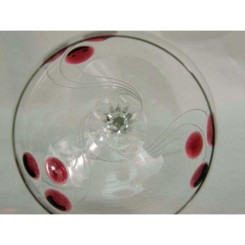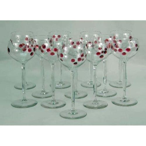 TWELVE COLORLESS GLASS WINE GOBLETS<BR><BR>With red cherry accents, 9 3/4"h, chips