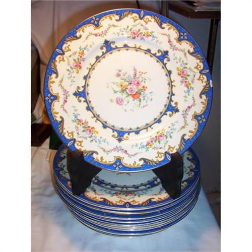 From old estate and one owner: TWELVE MYOTT SEVRES STAFFORDSHIRE ENGLAND 9811 DINNER PLATES. Some signed "A. Roberts." Six have crazing. One has chip. Note: We will pack/ship via local UPS Store.
