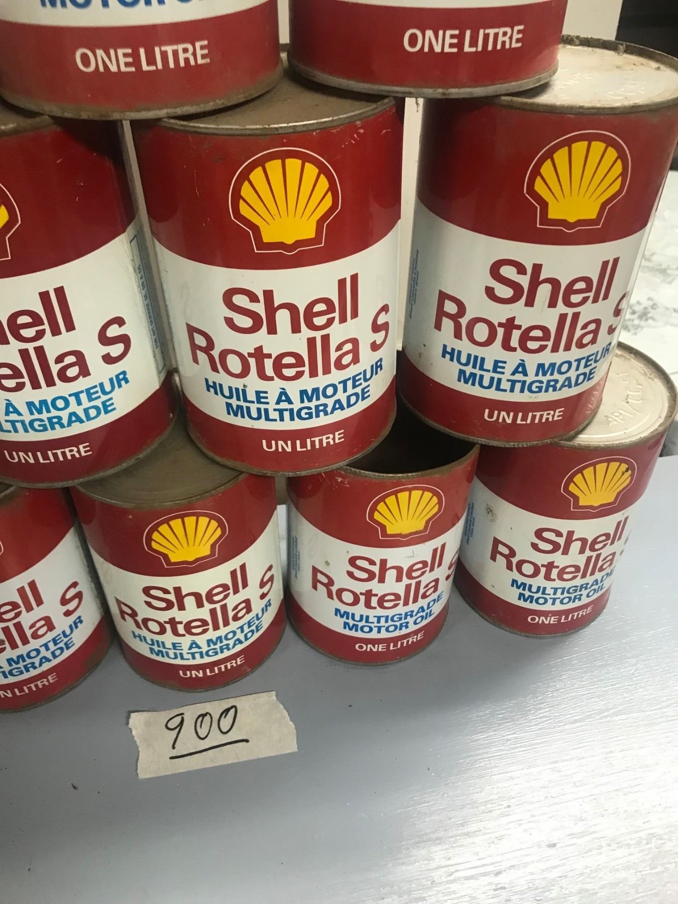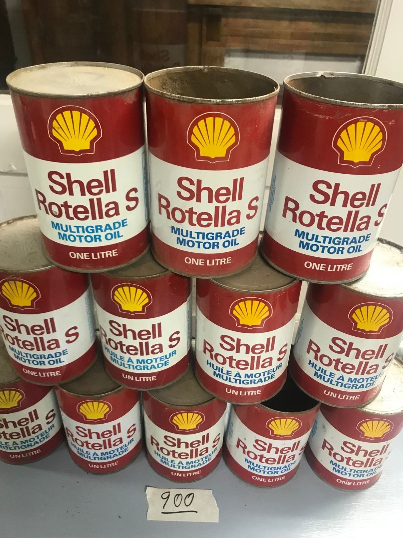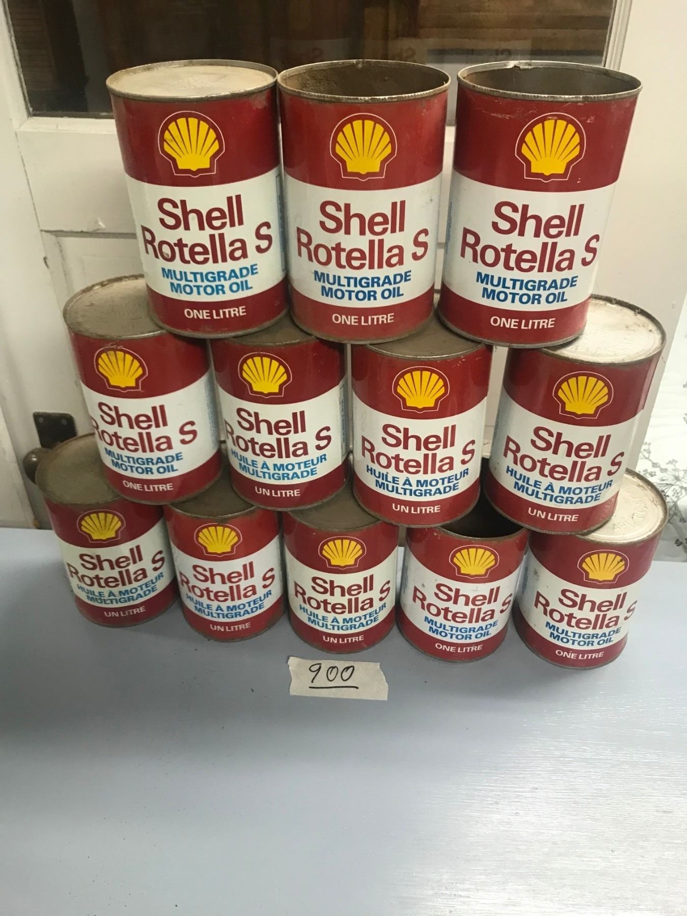 TWELVE SHELL OIL TINS - OPENED TOPS